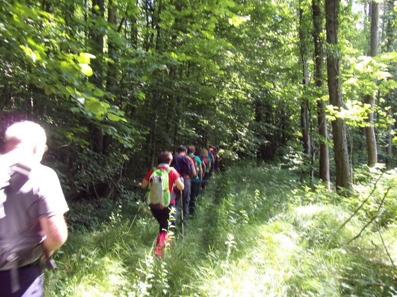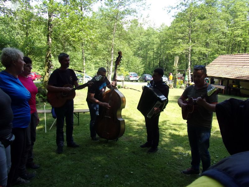 Domaćini su kao i do sada vrhunski organizirali ovo okupljanje planinara . Uz uobičajene planinarske delicije - čaj, kruh i piće dobrodošlice, domaćini su pozdravili skup, a obratio nam se predsjednik Udruge Slavonski planinari Predrag Livak. Dan je bio sunčan i topao, a šuma svježa i zelena ispunjena cvrkutom ptica. Išlo se na dvije staze: kraća 2 sata hoda i dulja 4 sata. Sedam naših članova se odlučilo za kraću, a pet za dulju. Staze su dosta vlažne, ali kako ovdje nema nekih uspona za planinare je to lagana i ugodna šetnja. Jedan dio staza vodi kroz šumu, a drugi preko brežuljaka s voćnjacima i vinogradima, te lijepo uređenim vikendicama. Svake godine na jednoj od vikendica nas dočeka i počasti pićem i kiflama bračni par koji su članovi društva domaćina. Kako je vrijeme bilo sunčano tako se odatle pružao prekrasan vidik na Viroviticu i okolnu šumu. Spustili smo se do ribnjaka i odatle do planinarske kuće Brusovi autobusom-obje grupe. Tamo je nastavljeno druženje uz glazbu, grah i ukusne kolače koje su pripremile njihove članice. Ugodno druženje je potrajalo do poslijepodnevnih sati.