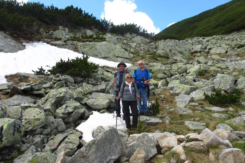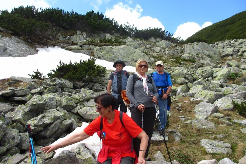 Drugi dan: Ujutro svi kreću do stanice gondole Jastrebac i žičarom do visine 2369 m. Žičara se diže iznad prekrasne borove šume i pogled je očaravajući. To je područje planine Rila gdje se nalazi 81 tisuća hektara nacionalnog parka. Ova planina ima oko 150 ledenjačkih jezera na visini od 2100 do 2500 m, a dubina im doseže i do 40 m. Planina ima bogat šumski i biljni pokrov, a stijene su granitne i metamorgitne, paleozoiskih škriljaca stari do 250 mil. godina. Padine planina su izvori najvećih rijeka. Planina je stanište medvjeda i drugih divljih životinja. Cilj pohoda je najviši vrh Musala-najviši vrh Bugarske i Balkana 2925 m. Ovo je drugi pohod veće grupe naših planinara na ovu prelijepu planinu i vrh. Veći dio grupe uživa u šetnji i razgledavanju jezera, ledenjaka i okoliša, te dolazi do visine prema svojim mogućnostima, a onda se vraća prema žičari koja je vidljiva sa svakog dijela staze. Manja grupa - troje njih stiže na vrh. Pogled je zadivljujući na gorsika jezera, ostale kamene vrhove, šumski dio i na zelene livade. Bilo je i kiše, ali na sastanku kod žičare, svi su bili zadovoljni.