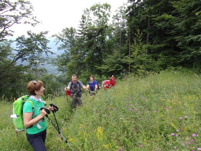Na poziv dugogodišnjih planinarskih prijatelja PD „Konjuh“ iz Tuzle dogovoren je ovaj izlet. Predstavnici domaćina Stiv i Nada su nas dočekali i zajedno vozilima smo stigli oko podneva u područje lijepo uređenog planinarskog doma „Javorje“. Nakon kraćeg odmora krenuli smo u pravcu obližnjeg vrha Bandjerka (ima i naziv Bandera) 1209 m. Nalazi se na grebenu Konjuha u području Javorja. Za dio ekipe ovo nije prvi susret s ovom planinom. Ovo područje upoznali smo u zimskim uvjetima i bilo je nezaboravno. Jedanaest članova naše ekipe, uz troje domaćih, je krenulo prema vrhu. Ušli smo u prekrasnu šumu jela, smreka, javora, bukve i drugog šumskog raslinja. Strmi uspon je osiguran sajlama i svi su ga svladali. Vrijeme je bilo oblačno. Očekivala se i kiša. Djelomično smo prolazili i preko travnatih proplanaka punih gorskog mirisnog cvijeća. Od cvijeća prevladavala je žuta gospina trava, majčina dušica i pokoji ljiljan. Na više mjesta naišli smo na obilje zrelih plodova malina. Iako oblačno, s vrha se pružaju zadivljujući pogledi na veliki dio ove prelijepe planine i nije bez razloga ovo područje proglašeno zaštićenim parkom prirode. Na vrhu smo sreli zanimljivu malu životinjicu –skoči miš. Povratak je uslijedio manje strmim dijelom, a staza je vodila kroz još ljepše travnate terene i sve veća stabla šume. Naišli smo i na gorski izvor s kojeg se dom opskrbljuje vodom. Više od tri sata smo uživali u ovim ljepotama uz iscrpno izlaganje našeg Stiva o ovoj planini i kraju. Oko pola sata pred kraj puta nas je pratila kiša, no nije pokvarila naše raspoloženje. Po povratku, u toplom prostoru doma smo uživali u ugodnom druženju uz ukusnu večeru i topli čaj, što su pripremili domaćini. Tu su bili i naši isto tako dragi planinarski prijatelji iz Kiseljaka, pa je druženje potrajalo do kasnih večernjih sati.