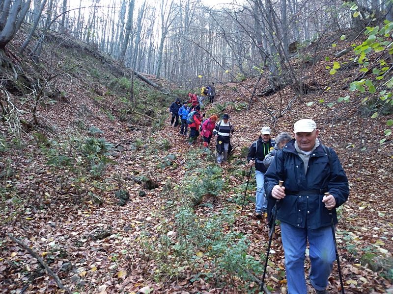 -Bili smo u Gazijama na izletu Prvi zadnjega (prvog dana zadnjeg mjeseca u godini) domaćina HPD „Sunovrat“ Đurđenovac na Krndiji. Iz našeg društva bilo nas je osamnaest. Okupilo se oko 150 planinara iz 10 planinarskih udruga. Domaćin nas dočekuje s pićem dobrodošlice te čajem i masnim kruhom. Nakon pozdravne riječi domaćina idemo na predviđene tri planinarske staze: kraća staza je preko Pijeskova (oko 2 sata), srednja staza je staza Put dida Račkog (oko 3 sata) i duža je na Petrov vrh (oko 4 sata). Naših petero članova odlazi na Petrov vrh, a svi ostali na stazu Put dida Račkog. Hodali smo dionicama Tragom prvog izleta, Razbijeno kolo, Kolut i dionicom kroz kanjon Lekinog potoka do planinarske kuće. Vrijeme je za ovo doba godine predobro i mi smo ga iskoristili za hodanje po tepihu od lišća, a usput smo imali priliku i brati gljive sunčanice. Pri povratku u planinarsku kuću očekuje nas izvrstan planinarski grah, nastavljamo druženje uz piće i živu glazbu. Pozdravljamo se sa domaćinima i u 16 i 30 krećemo doma, zapisao je Matko Florijančić.