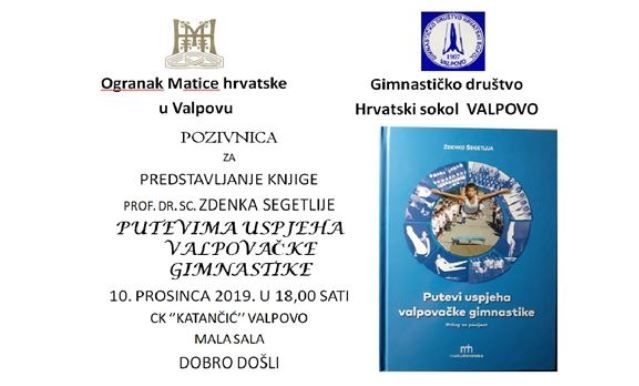 VALPOVO Ogranak Matice hrvatske Valpovo i Gimnastičko društvo Hrvatski sokol organiziraju predstavljanje knjige dr. Zdenka Segetlije: Putevima uspjeha valpovačke gimnastike.