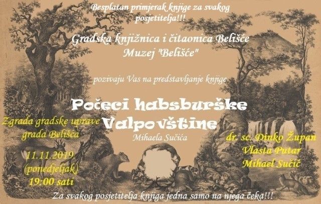 BELIŠĆE Gradska knjižnica i čitaonica Belišće i Muzej „Belišće“ organiziraju predstavljanje knjige Počeci habsburške Valpovštine: Čovjek između potreba i mogućnosti Mihaela Sučića u sklopu manifestacije Mjesec hrvatske knjige.