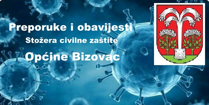BIZOVAC Stožer civilne zaštite općine Bizovac obavijestio je stanovnike koji žive na području Općine Bizovac preporukama I važnim obavijestima u zaštiti od koronavirusa.