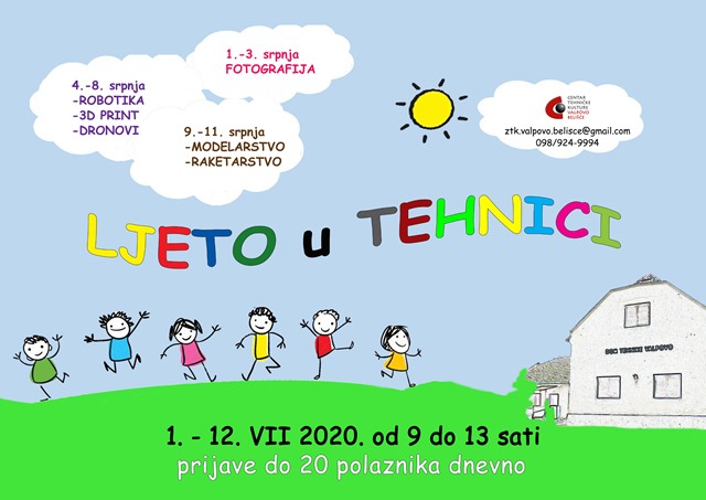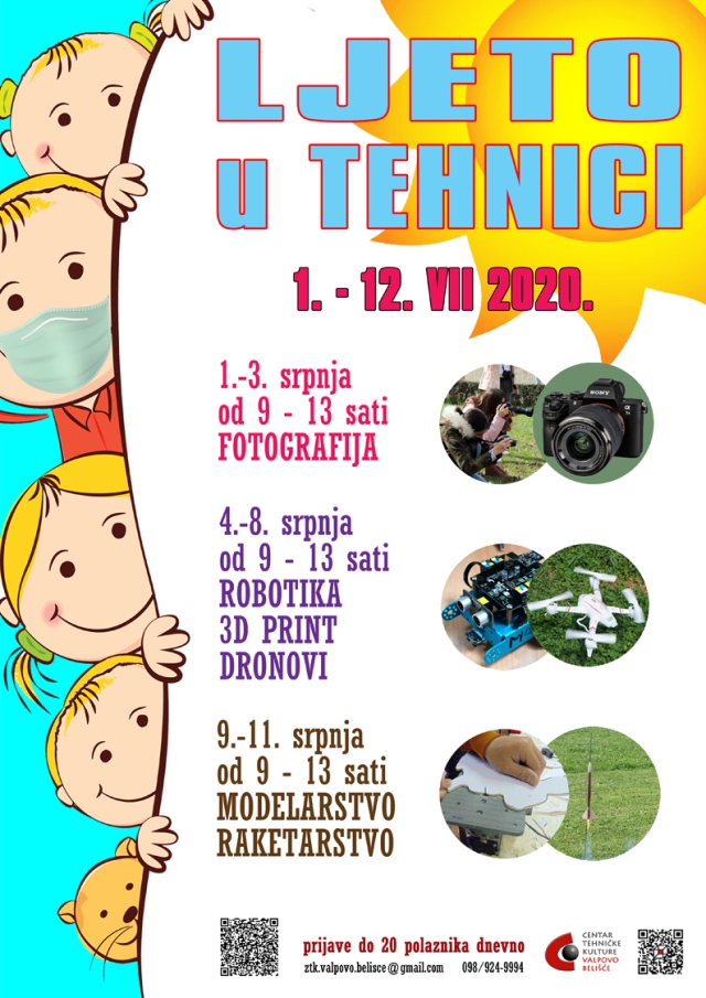 Zajednica tehničke tulture Valpovo-Belišće organizira za sve zainteresirane učenike radionice u Domu tehnike u Valpovu od 1. do 12. srpnja 2020. od 9:00 do 13:00 sati. Ove godine produžili smo i dnevnu satnicu, a i broj dana radionica.
