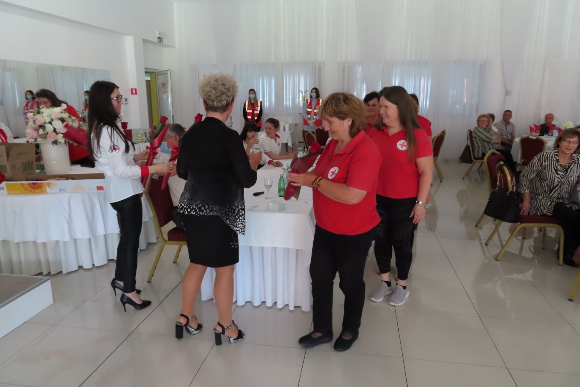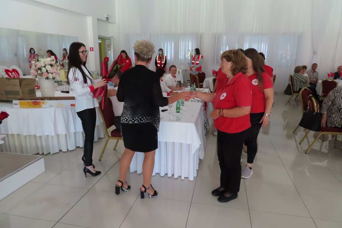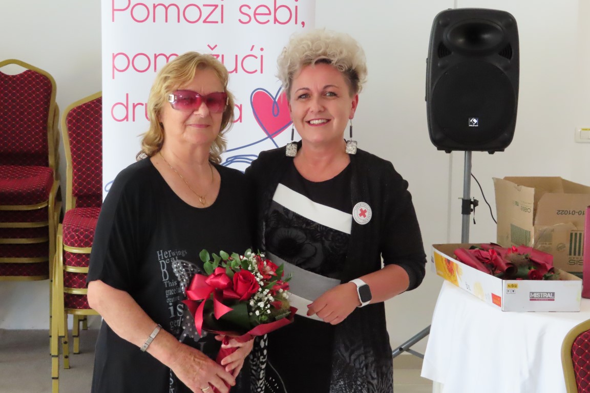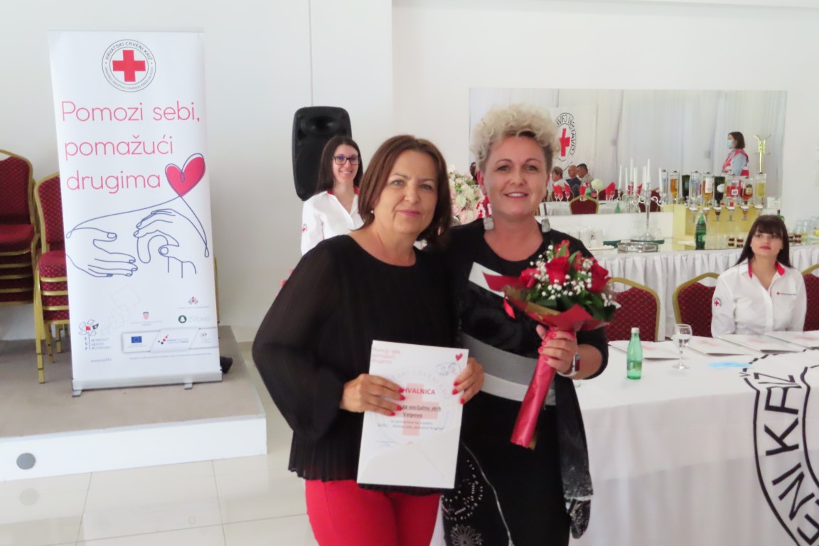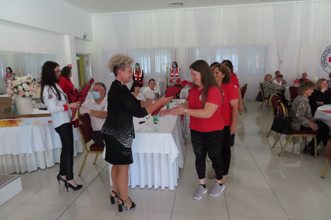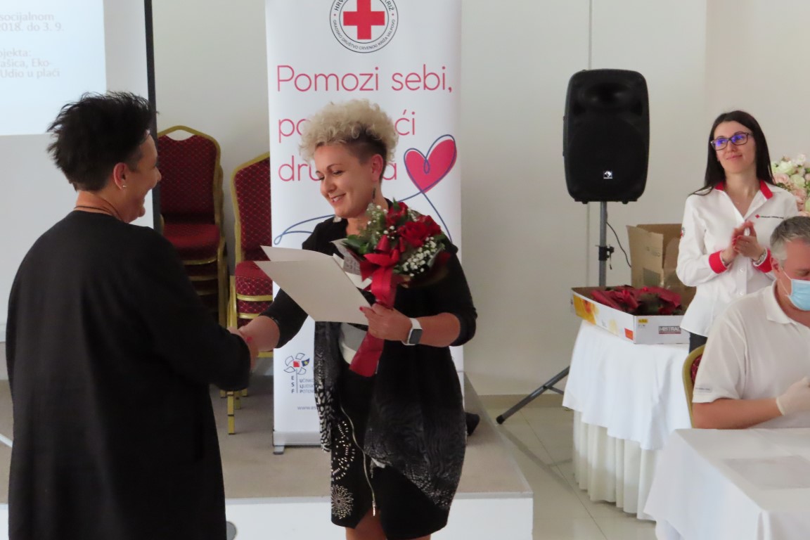 Posebnu zahvalu uputila je svim zaposlenim gerontodomaćicama koje su se pune dvije godine u potpunosti predale najhumanijem činu, a to je pomoć drugima, i bez kojih ovaj projekt ne bi imao značenje koje danas ima. Krajnjoj korisnici iz Belišća gđi. Mileni Glasovac koja nam se obratila s par prigodnih riječi i korisniku iz Valpova, što su nam ukazali povjerenje u protekle dvije godine provedbe projekta i svojom nazočnošću uveličali završnu svečanost dajući joj puno veće značenje. Svim partnerima koji su pomogli u njegovu stvaranju i provedbi te svim zaposlenicima Gradskog društva Crvenog križa Valpovo koji su sa ljubavlju i osmjehom na licu pratili njegovu provedbu. Na samom kraju ravnateljica GDCK Valpovo osobito je zahvalila za pisanje projektnog prijedloga tadašnjoj direktorici LRA, Lidiji Maurović Košćak i Ivani Zeko te je uručila zahvalnice i prigodne znakove pažnje svim partnerima i zaposlenim gerontodomaćicama, dok su one u znak pažnje i zahvalnosti prekrasnim buketom i šalicom sa simoboličnim otiskom u znak sjećanja darivale ravnateljicu GDCK Valpovo i voditeljicu projekta Tamaru Katalinić.