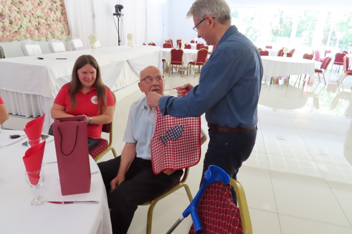 Svečanosti su prisustvovali uvaženi gosti: zamjenica gradonačelnika, Ana Brajnović, ravnateljica Centra za socijalnu skrb Valpovo, Janja Oklopčić, voditeljica ispostave Hrvatskog Zavoda za zapošljavanje Valpovo, Lidija Vidošić, predsjednica Udruge „Zvono“ u Belišću, Mira Anić, predstavnica Lokalne razvojne agencije, Ivana Zeko, zamjenik ravnatelja Crvenog križa Osječko Baranjske županije, Goran Latković, predstavnica Gradskog društva Crvenog križa Beli Manastir, Jelena Momčilović, ravnatelj Gradskog društva Crvenog križa Donji Miholjac, Ivan Petriševac, predstavnik Općinskog društva Crvenog križa Darda, Marin Šestanj, voditelj LAG-a Karašica iz Petrijevaca, Ivan Vrbanić, zastupnici Odbora i Skupštine Gradskog društva Crvenog križa Valpovo, 12 žena zaposlenih za pomoć u kući te dvoje krajnjih korisnika sa područja Valpovštine.