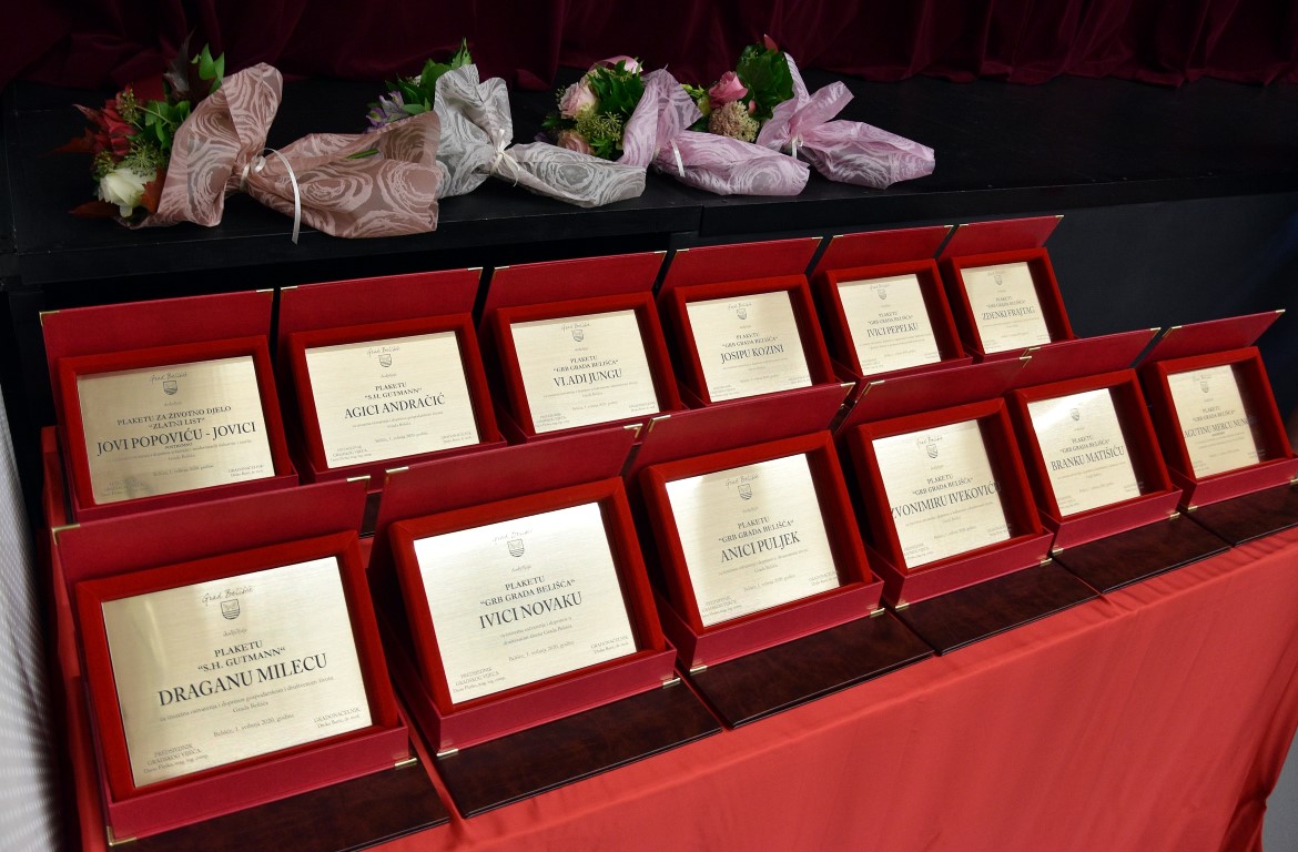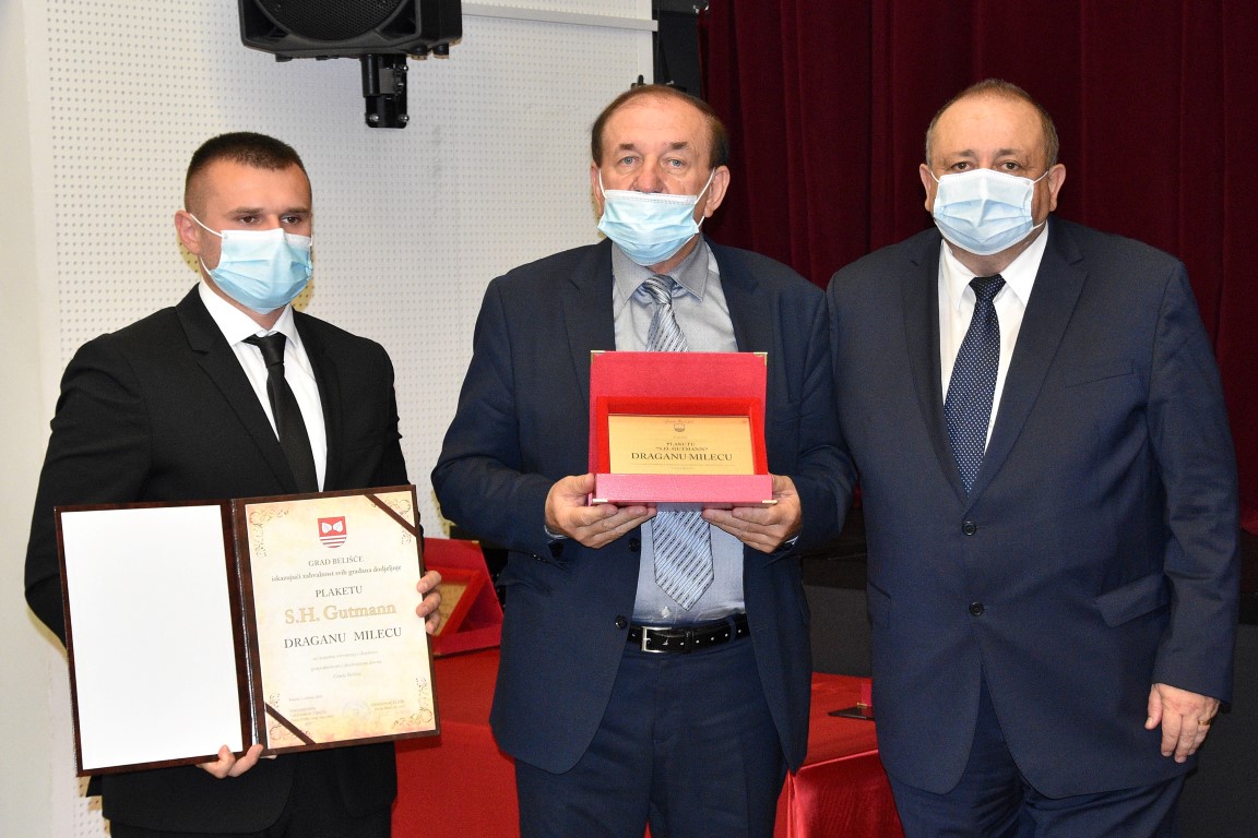 Prigodnim riječima svečanu sjednicu obogatili su i drugi govornici, a potom je uslijedila dodjela javnih priznanja. Odlukom Gradskog vijeća grada Belišća, plaketa za životno djelo “Zlatni list” dodijeljena je posthumno Jovi Popoviću – Jovici za izuzetna ostvarenja i doprinos u razvoju i modernizaciji industrije i naselja Belišća. Plaketa “S.H. Gutmann” dodijeljena je Draganu Milecu za izuzetna ostvarenja i doprinos u području gospodarskog i društvenog života te Agici Andračić za izuzetna ostvarenja i doprinos gospodarskom životu grada Belišća. Plaketu “Grb grada Belišća”, javno priznanje koje se dodjeljuje za izuzetna ostvarenja i doprinos u kulturnom, vjerskom, društvenom i svekolikom životu grada Belišća dobili su Branko Matišić, Zvonimir Iveković, posthumno Dragutin Merc Nunoš, Ivica Pepelko, Anica Puljek, Ivica Novak, Josip Kozina, Vlado Jung te Zdenka. U ime ovogodišnjih laureata zahvalio se Dragan Milec.