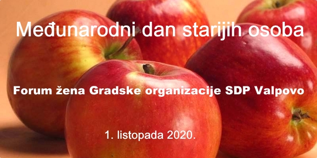 VALPOVO Forum žena Gradske organizacije SDP Valpovo povodom Međunarodnog dana starijih osoba 1. listopada, poziva sugrađane "zlatne životne dobi" na obilježavanje Dana starijih osoba.