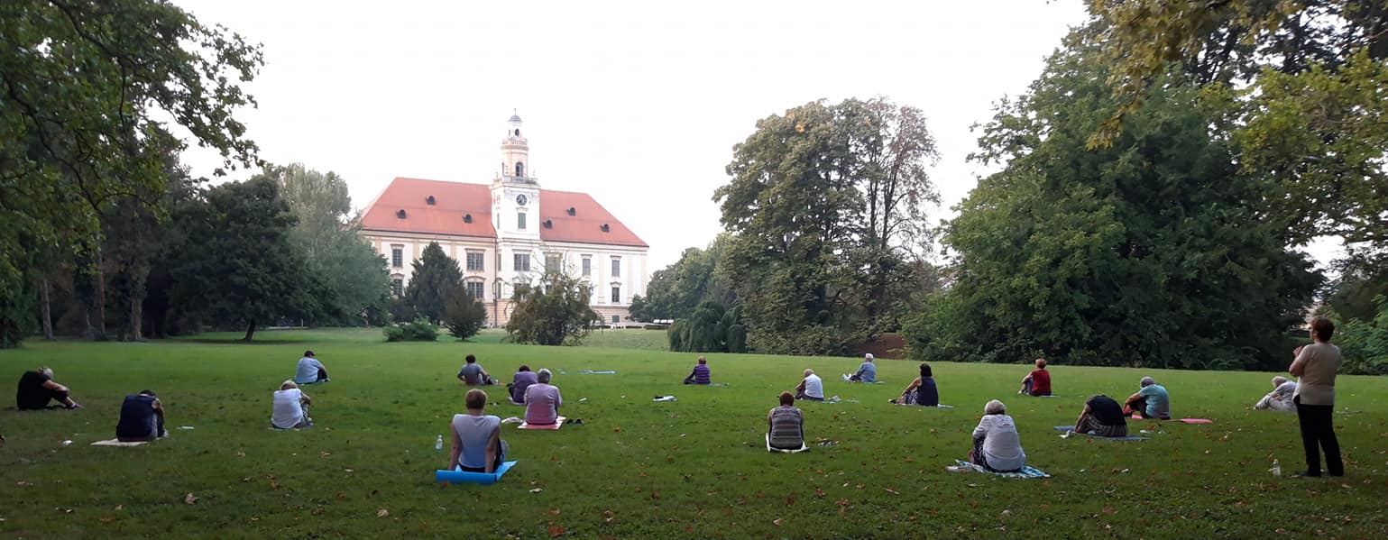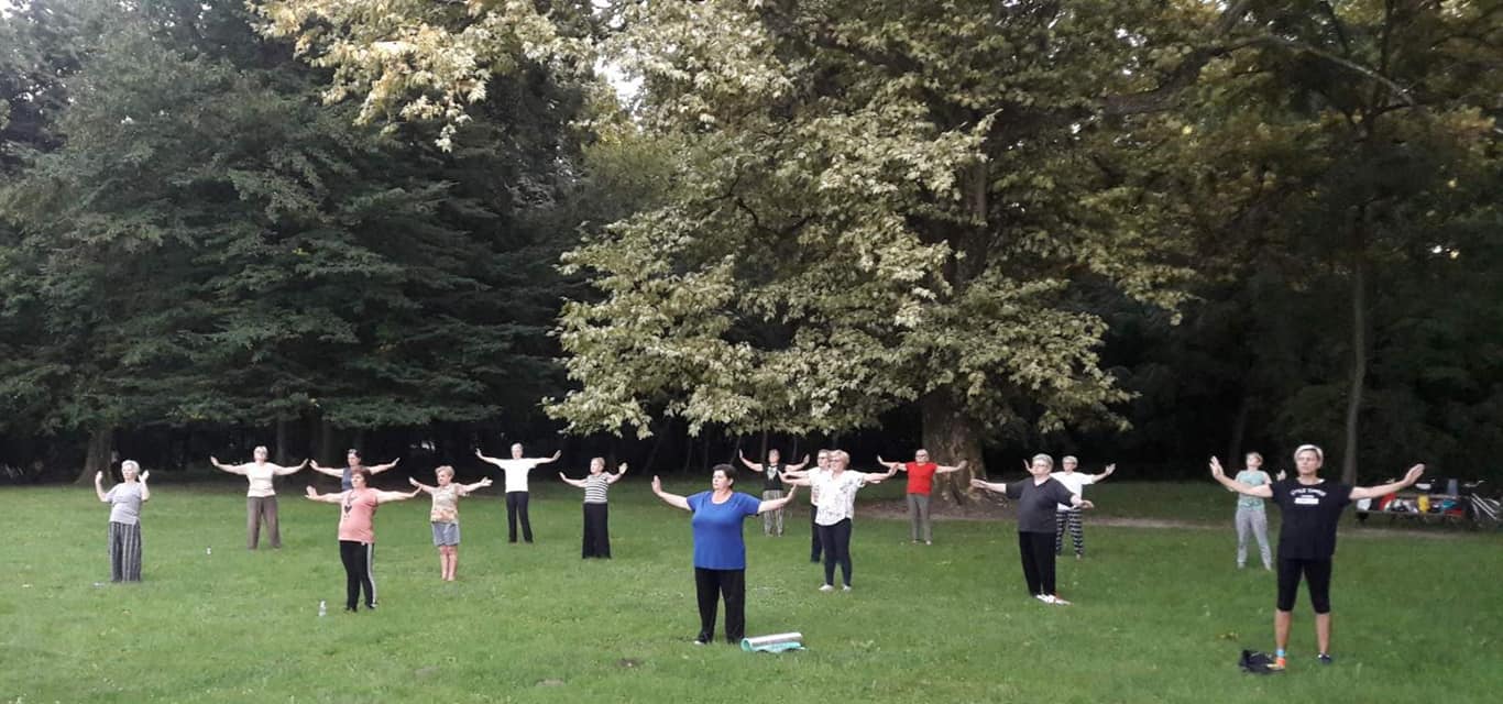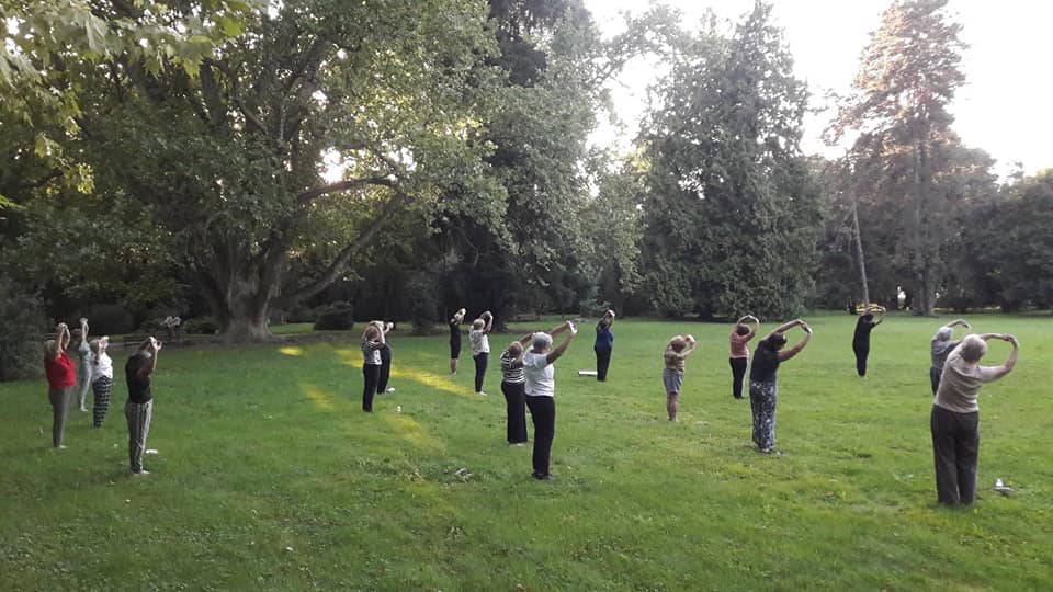 S obzirom na specifičnost COVID 24.8.2020. u valpovačkom perivoju započele su pripreme, vježbanje u prirodi za starije osobe bez pritiska i financijskih troškova .Tijekom mjeseca rujna i listopada dva puta tjedno po 60 minuta kroz vježbe svjesnog disanja i istezanja polaznice mogu osvijestiti snagu daha i pokreta. U prvom tjednu druženja vježbanje je započelo 20-tak žena umirovljenica, žena zlatne dobi. Vježbe se izvode na livadi ( popularno kod platane) gdje mogu veoma uspješno, a po preporuci stožera održavati poželjnu međusobnu udaljenost-distancu .