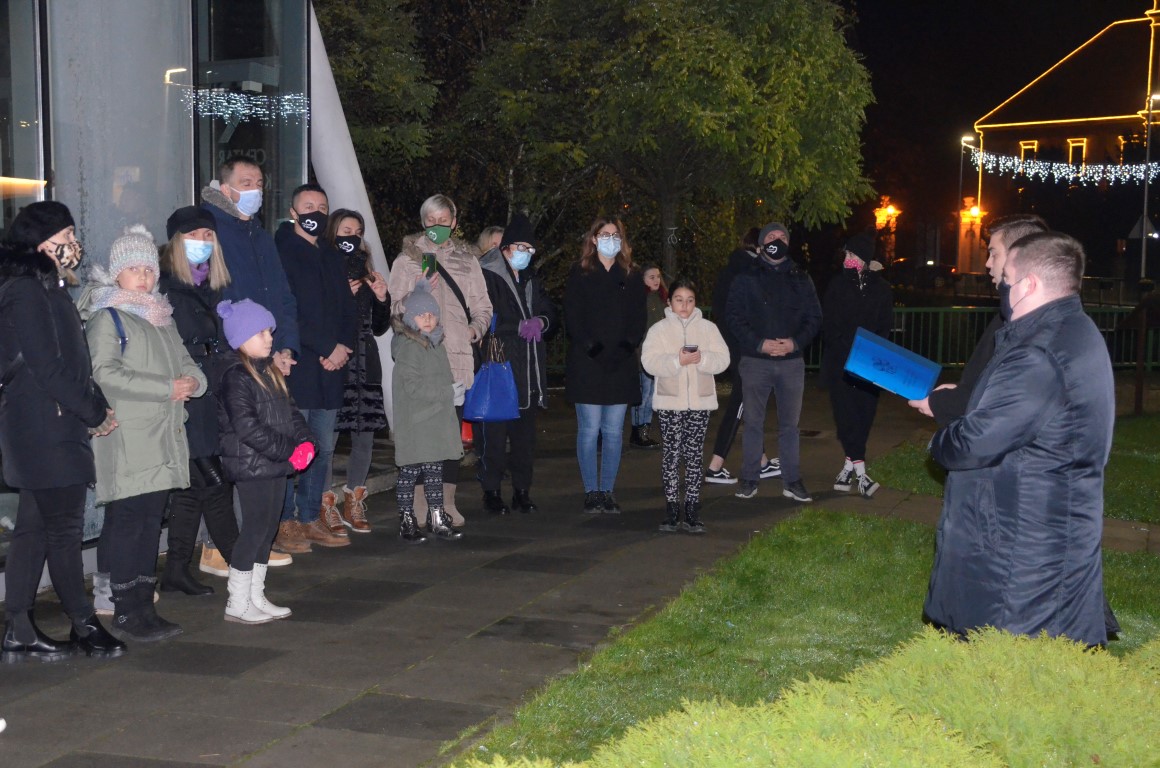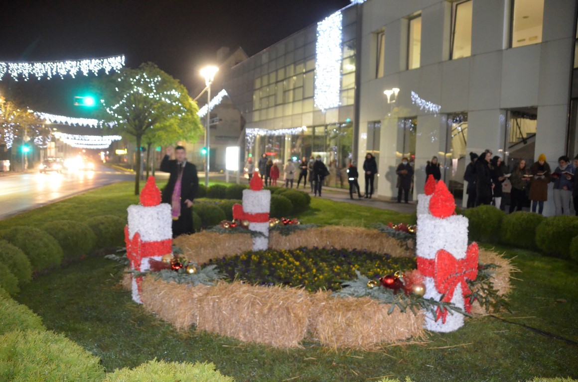 Prvu je svijeću, svijeću Nade, upalila mala Sara Janjić, a molitvu su predvodili Luka Ćosić, župni vikar i đakon Bruno Diklić. Uz prigodne napjeve u izvođenju pjevačkog zbora Sv. Cecilije kratka je svečanost održana pred okupljenim građanima među kojima je bio i gradonačelnik Matko Šutalo sa suradnicima. U skladu s epidemiološkim mjerama, svi promatrači, pa i slučajni prolaznici koji nisu sudjelovali u izvedbi programa, bili su zaštićeni maskama.