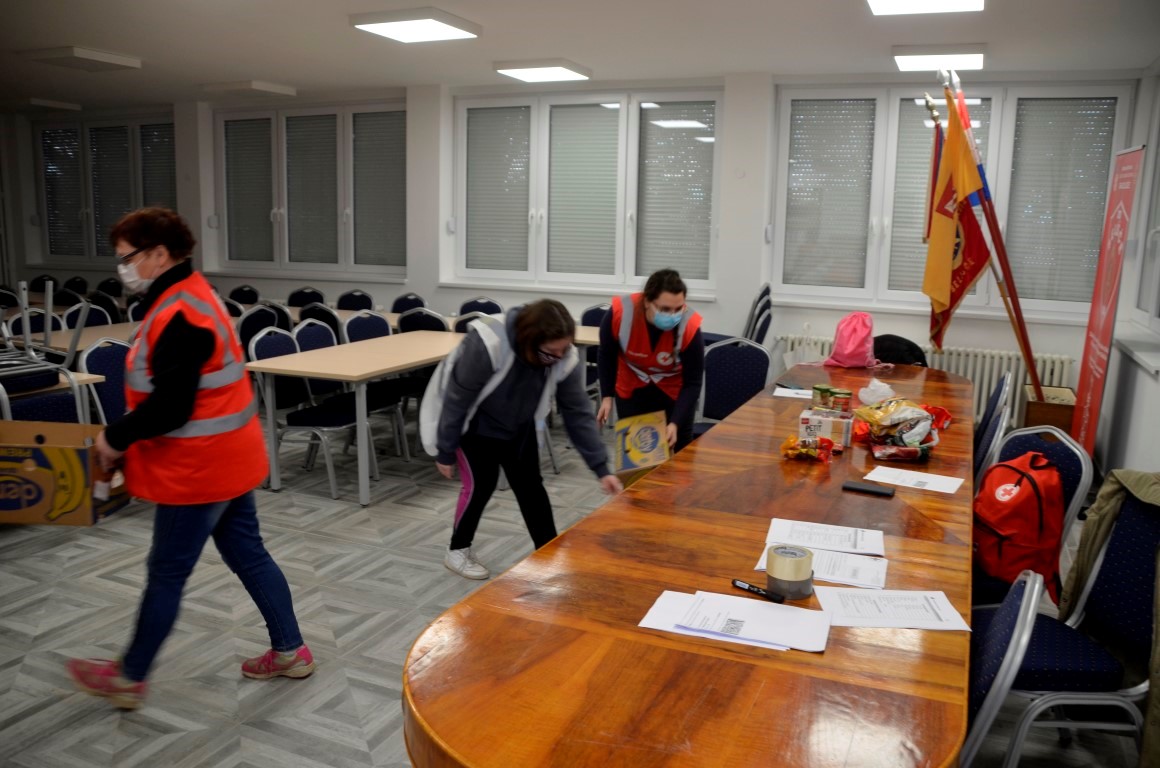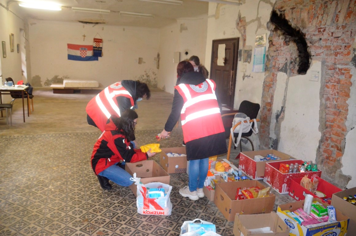 U Belišću, u prostorijama DVD Belišće zatičemo ekipu volontera i zaposlenika Crvenog križa u kojoj Marina Crnoja, Paula Cvenić, Vesna Butorac, Sanela Srđenović i Stjepan Gregorić već razvrstavaju primljene donacije.
