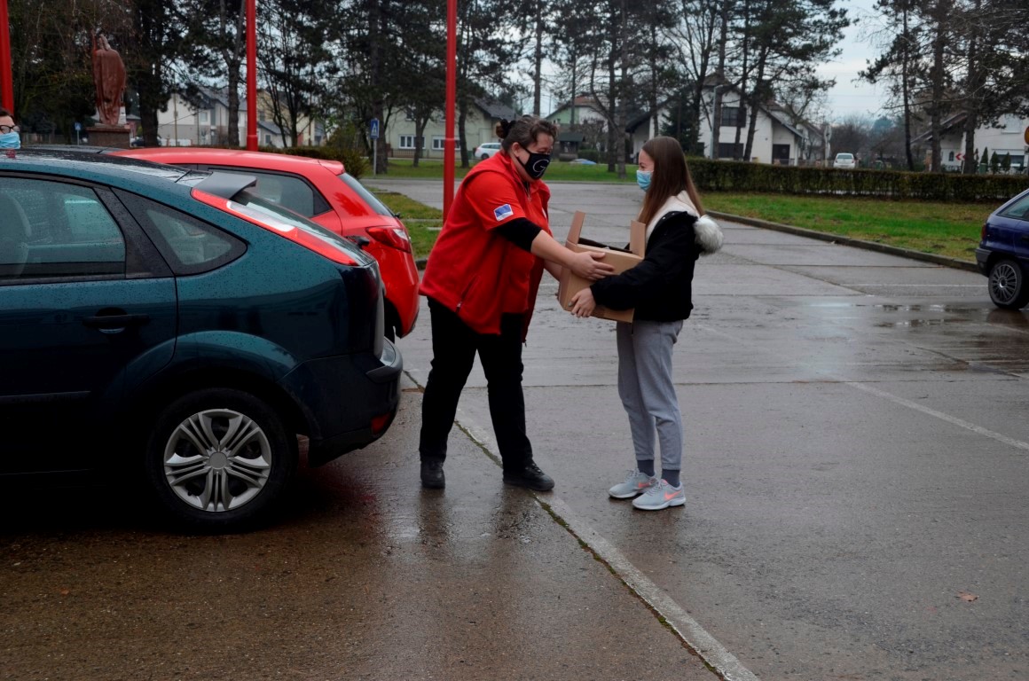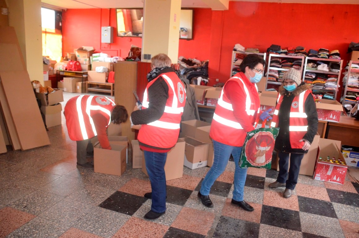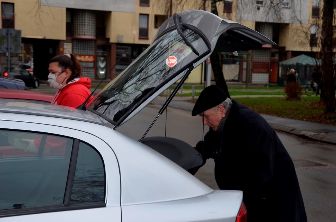 Obilazak punktova nastavljamo u Valpovu, u „staroj samoposluzi“. Dunja Lazar jedina je volonterka u ekipi, a Marina Stjepanović, Branka Petrović, Valentina Vujić, Nada Mikulec i Snježana Hojsak zaposlenice su Gradskog društva Crvenog križa Valpovo koje su i u ovo blagdansko vrijeme spremne obaviti sve potrebne zadaće.