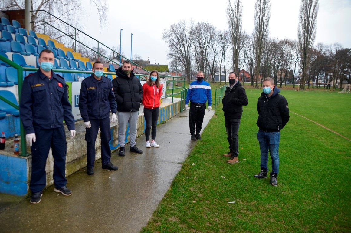 Obilazak punktova nastavljamo u Ladimirevcima, gdje na mjesnom nogometnom igralištu zatičemo grupu mladih Ladimirevčana- Ivana Janjića, Igora i Tomislava MIhalja iz DVD Ladimirevca, Filipa Ivanovića i Luku Šestanja iz Udruge mladih, Doru Franjić i Emu Babok iz Gradskog društva Crvenog križa Valpovo te Tomislava Janjića i Zorana Vranjkovića iz NK Slavonac . Trenutačno nemaju mnogo posla, jer su prvi val donatora već prihvatili i sistematizirali primljene donacije, a veći broj donatora je najavljen za poslije podne, nakon radnog vremena, pojašnjava nam Filip.