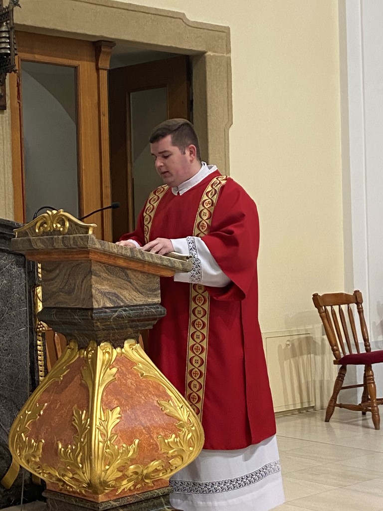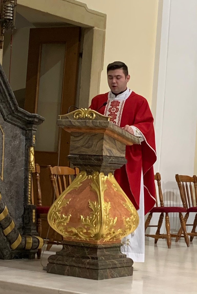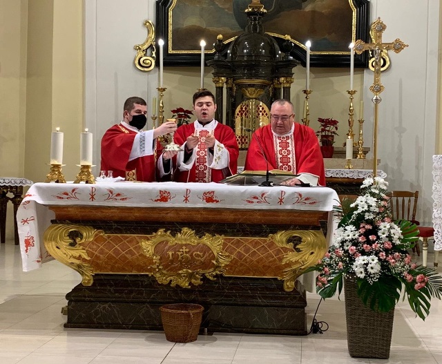 Svečano euharistijsko slavlje u večernjim satima predvodio je vlč. Luka Ćosić, župni vikar u Valpovu. U svojoj homiliji vlč. Ćosić je predstavio Stepinca kao onoga koji je svojim životom utjelovio sve bogoslovne kreposti: beskompromisnu vjeru, bezuvjetno ufanje i velikodušnu ljubav.