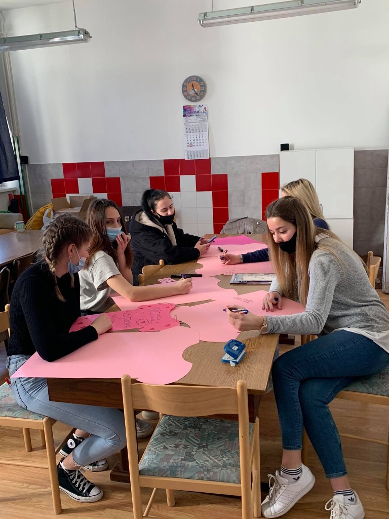 VALPOVO Vrijedni učenici četvrtog razreda ekonomista s nastavnicom Kristinom Najcer Bračevac i razrednicom Monikom Markota opet su zasukali rukave te ukrasili hol naše škole afirmativnim porukama kako bi dali svoj doprinos u borbi protiv vršnjačkog nasilja, koje je danas, na žalost, sveprisutno.