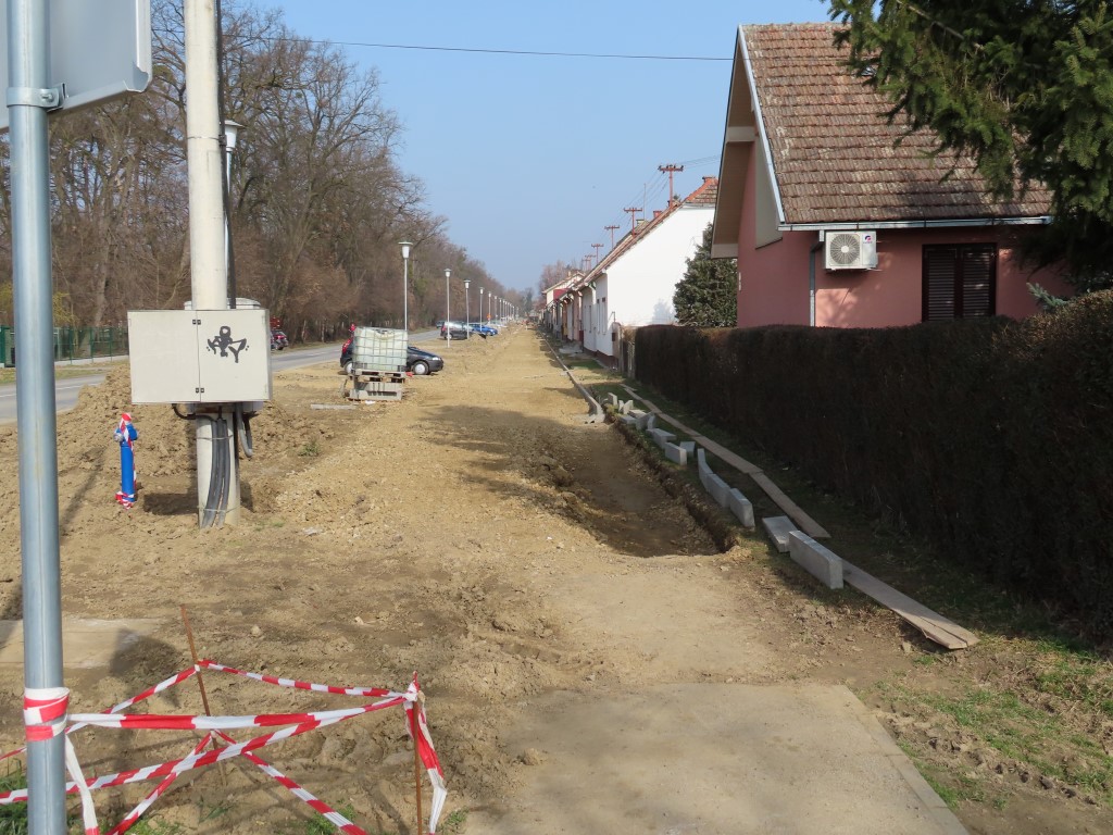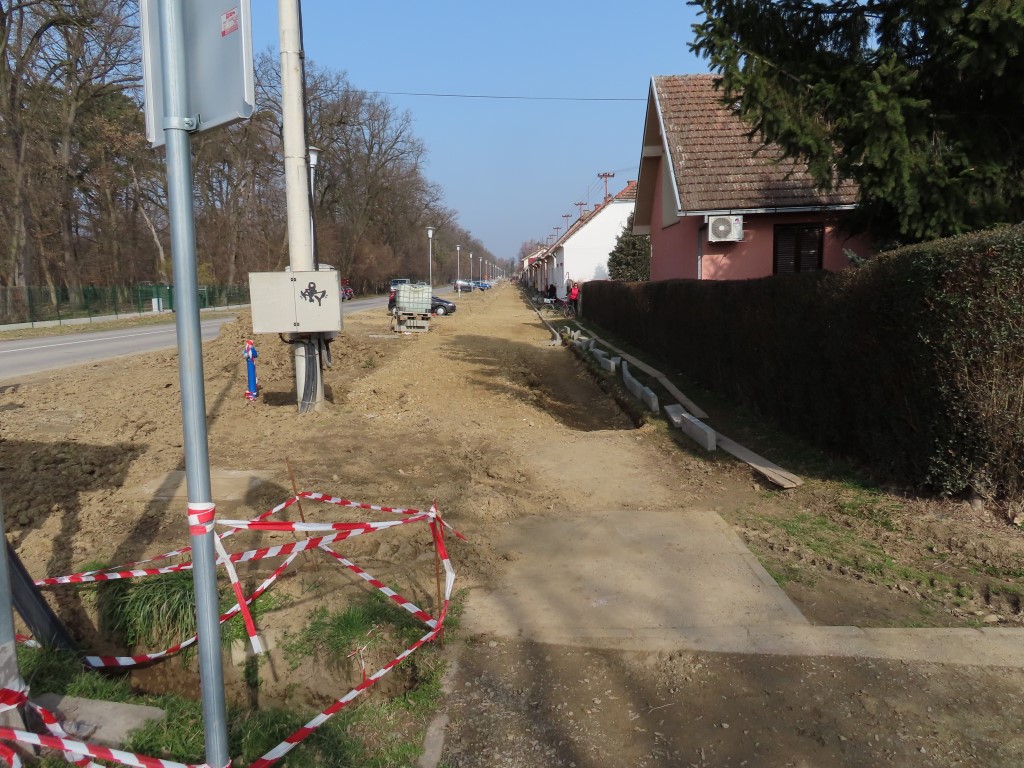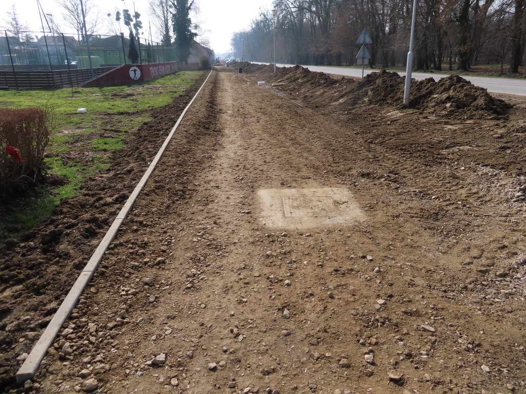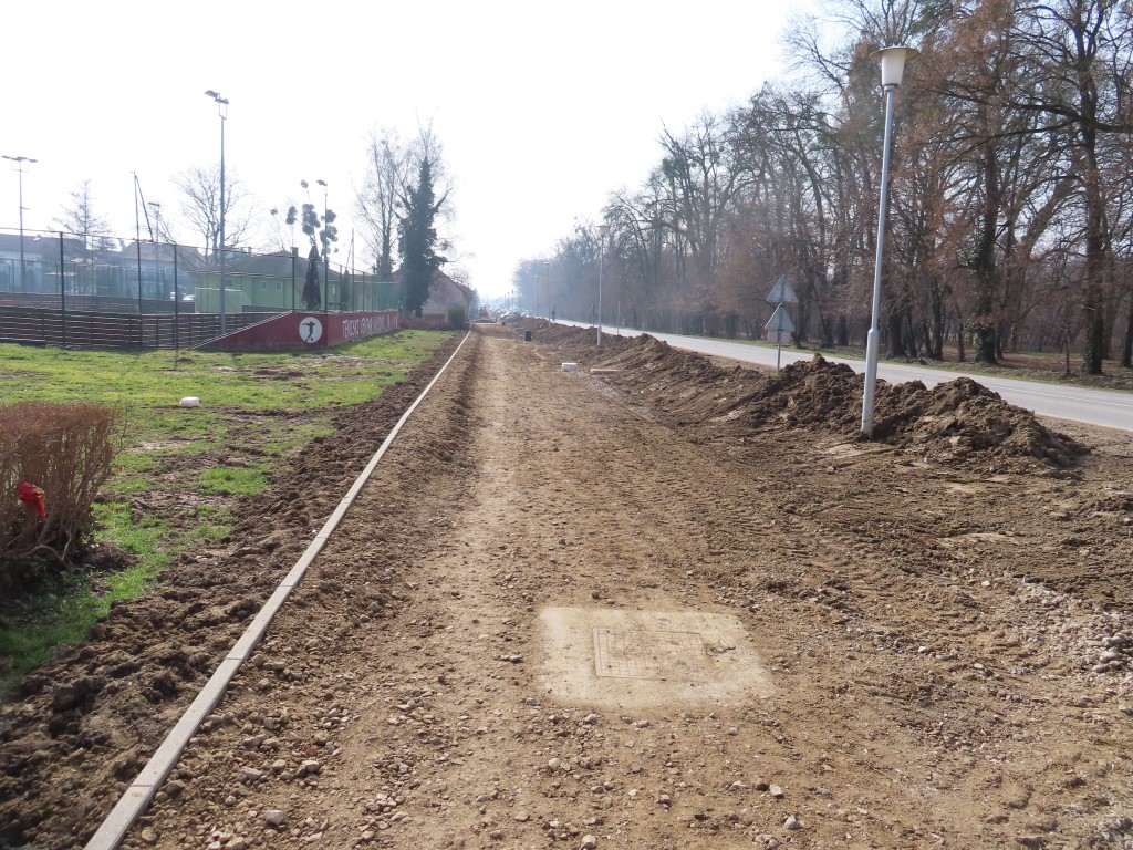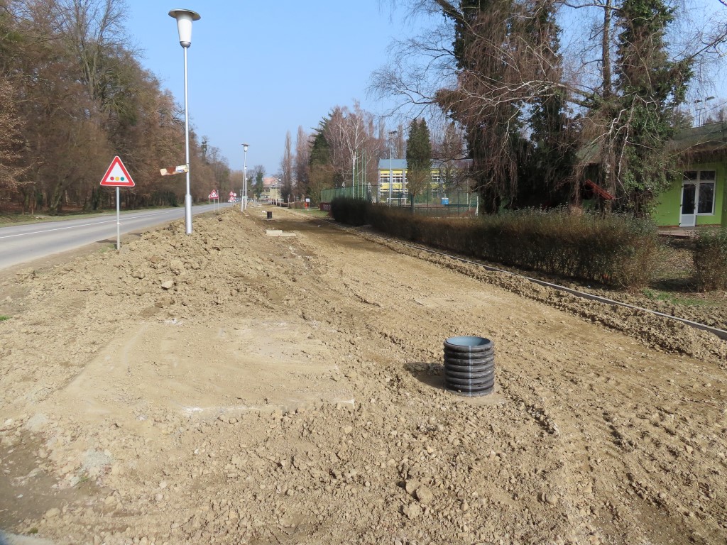 Radnici tvrtke GEBRUDER d.o.o. Bizovac do sada su duž cijele ulice postavili cijevi oborinskog kanala i ugradili separatore za odvajanje nečistoća na ispustu oborinske odvodnje, izradili slivnike, a trenutačno su u tijeku radovi na iskopu i izradi konstrukcije nosivog sloja bicikističko-pješačke staze.