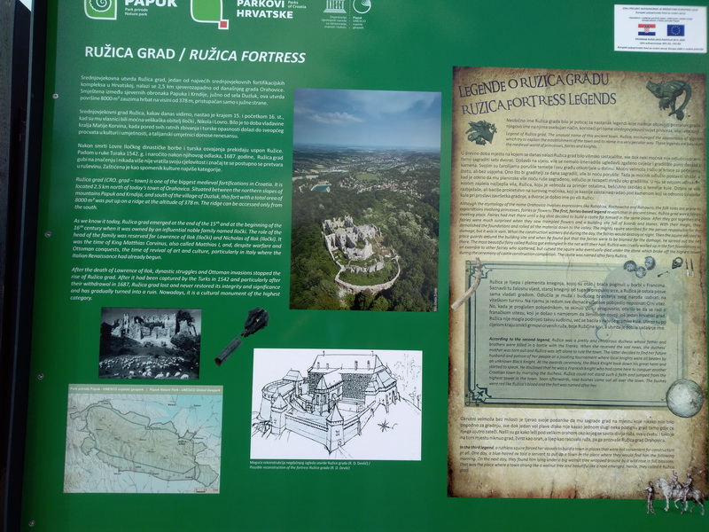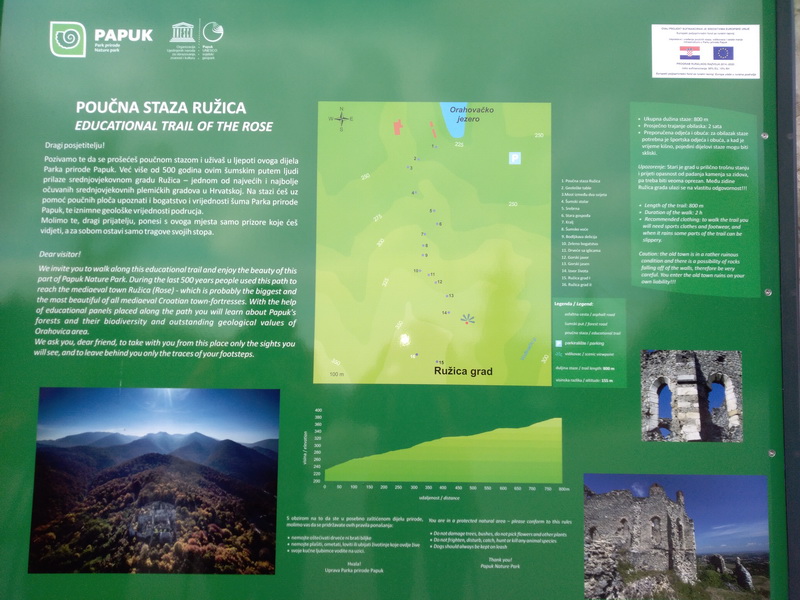 -Dolazimo na Orahovačko jezero, ostavljamo kombi na parkiralištu i krenemo prema Ružica gradu. To je lagana šetnja kroz šumu uz koju su postavljene poučne table za izletnike, a pogotovo interesantno za učenike koje vode njihovi učitelji.
