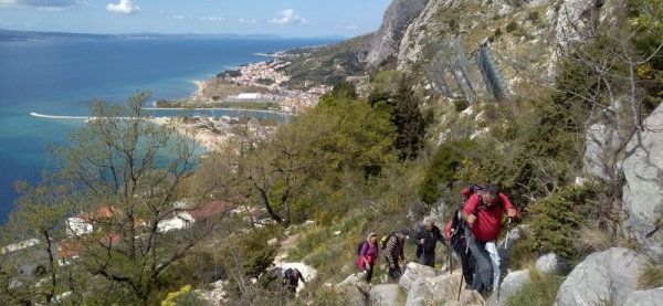 Zbog vremenske prognoze odustajemo od Biokova i odlazimo gdje je prognoza bolja, a i teren puta nešto lakši. Odlazimo na Omišku Dinaru koja je duga 16 km i široka 1 km, a sa zapadne i sjeverne strane omeđuje rijeka Cetina. Naših petero odlazi na vrh Kula 863 m. Staza kreće iz zaselka Čučuci uz stare kamene suhozide te vodi kroz borovu šumu do visoravni na Rašeljki. Na visoravni je planinarsko sklonište „Luda kuća“ ( 650 m ) sa kojeg se pruža lijep pogled na Omiš i Poljičku planu. Uspon nastavlja kozjom stazom kroz stijenu do zaravni Stražine te sa kamena na kamen na nisko raslinje na vrh Kula 863 m. U svim smjerovima lijepi su vidici. Druga grupa odlazi na tvrđavu Fortica koja je iz 15. stoljeća na visini od 262 m iznad grada Omiša. Jedanaestero nas kreće na uspon, no zbog terena ih troje odustaju i vraćaju se natrag i uživaju uz more i uz rijeku Cetinu. Nas devetero nastavljamo dalje i kako se uspinjemo pogled i vidici se šire na Omiš, more i otoke. Na tvrđavi uživamo u pogledima, a vrijeme lijepo i sunčano. Vraćamo se natrag, i svi čekamo prvu grupu. Stižu naši s vrha Kula i nakon zasluženog odmora krećemo dalje. Po dogovoru odlazimo u etno selo Kokorić gdje nas čeka naš domaćin Zvonimir Pervan i provodi nas kroz selo uz priču o povijesti i sadašnjosti sela.