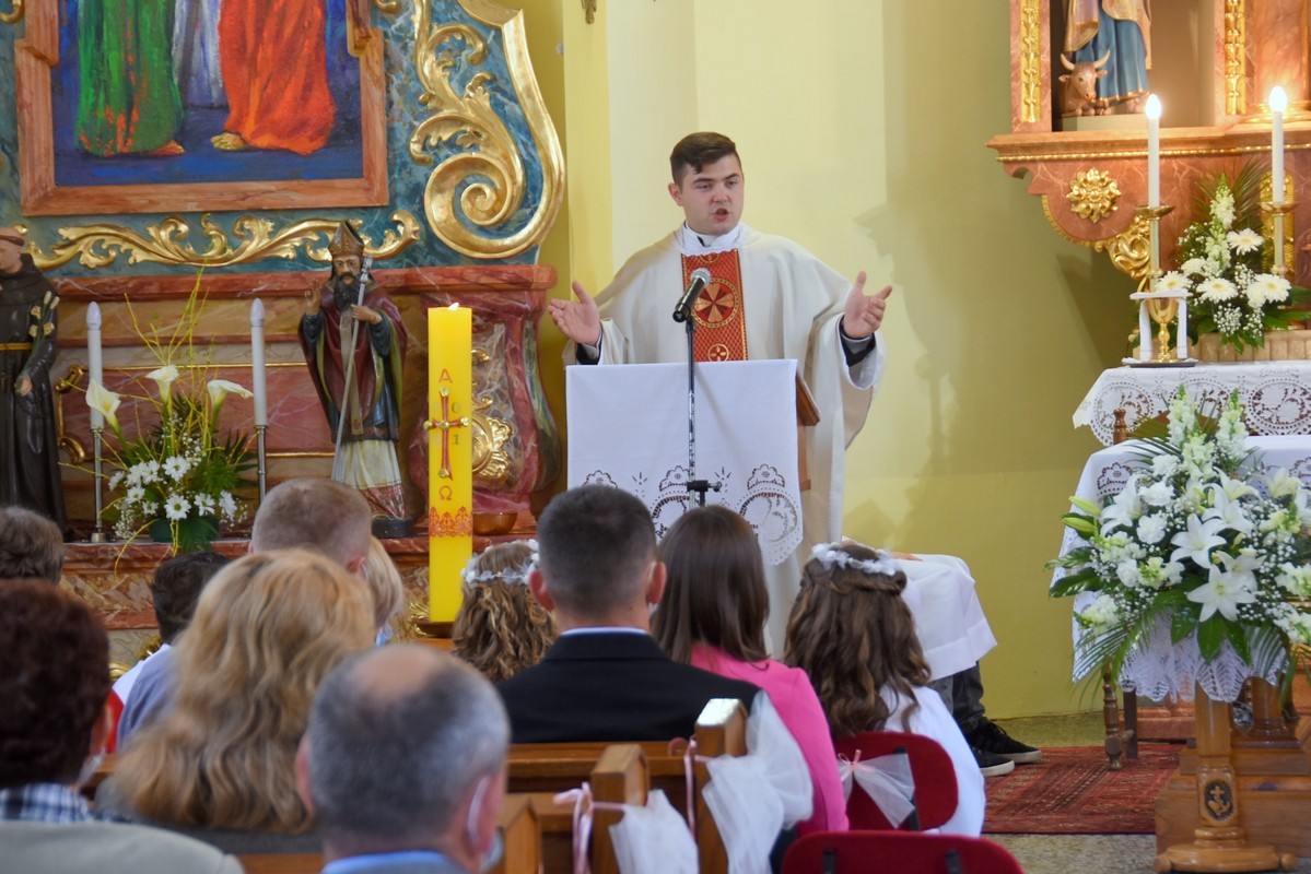 Svečanu misu u 11 sati, u bocanjevačkoj je crkvi predslavio vlč. Ćosić, koji je prvopričesnicima udijelio sakrament, a suslavitelj je bio valpovački đakon, vlč. Bruno Diklić. Euharistijsko slavlje svojim je sviranjem obogatila Katica Strugačevac zajedno sa zborom župe svetih Filipa i Jakova Bocanjevci.