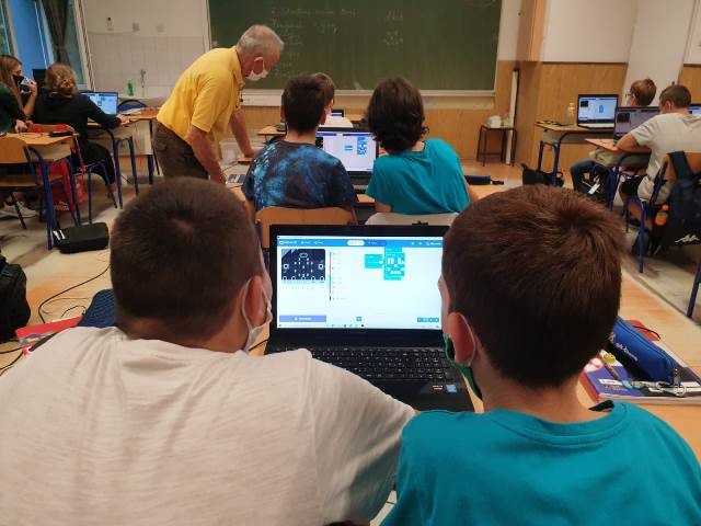 Krenuli smo u OŠ Matije Petra Katančića u Valpovu. U dogovoru sa ravnateljem Daliborom Košutićem i nastavnicom Biljanom Pantoš, praktičnu nastavu održavaju voditelji radionica CTK Valpovo-Belišće. Radionice po dva školska sata bile su 27. i 28. rujna 2021. u 6b, 7b, 8a, 6a i 7a. Predavanja i praktični dio nastave o microbitovima odradio je profesor Marijan Antolović sa ukupno 107 učenika.