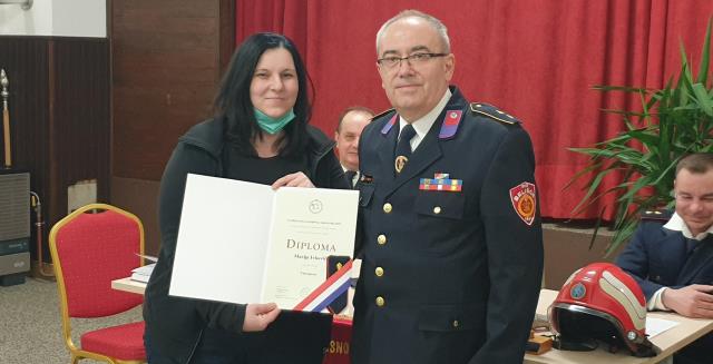 Na skupštini je zapovjednik VZG Belišće Dubravko Čovčić dodijelio je Mariji Ivković diplomu i uvjerenje o stjecanju zvanja Vatrogasac.