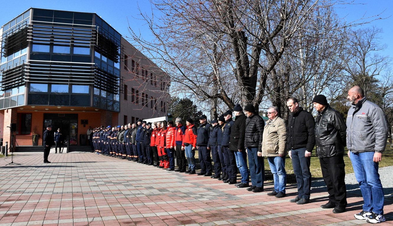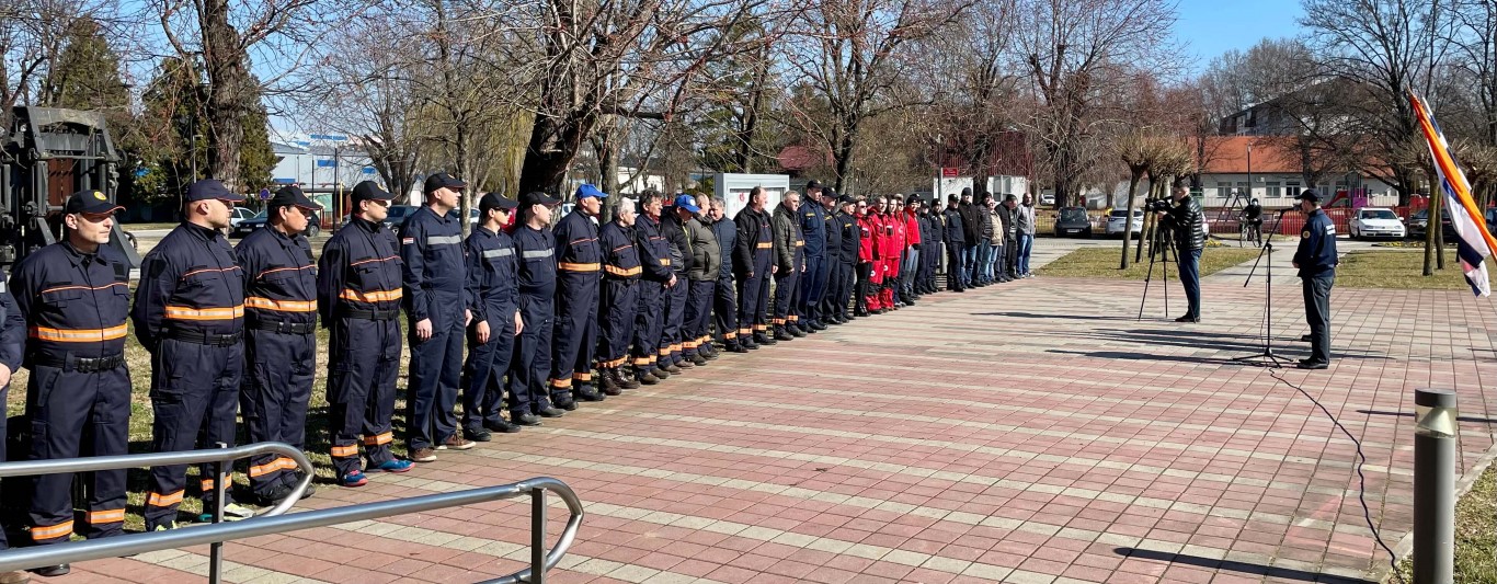 Nakon izjava za medije, uslijedilo je postrojavanje postrojbe Stožera civilne zaštite opće namjene grada Belišća i ostalih žurnih službi, a prijavak načelniku belišćanskog Stožera Domagoju Varžiću podnio je zapovjednik Vatrogasne zajednice grada Belišća Dubravko Čovčić.