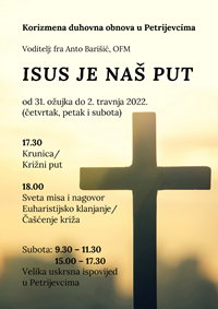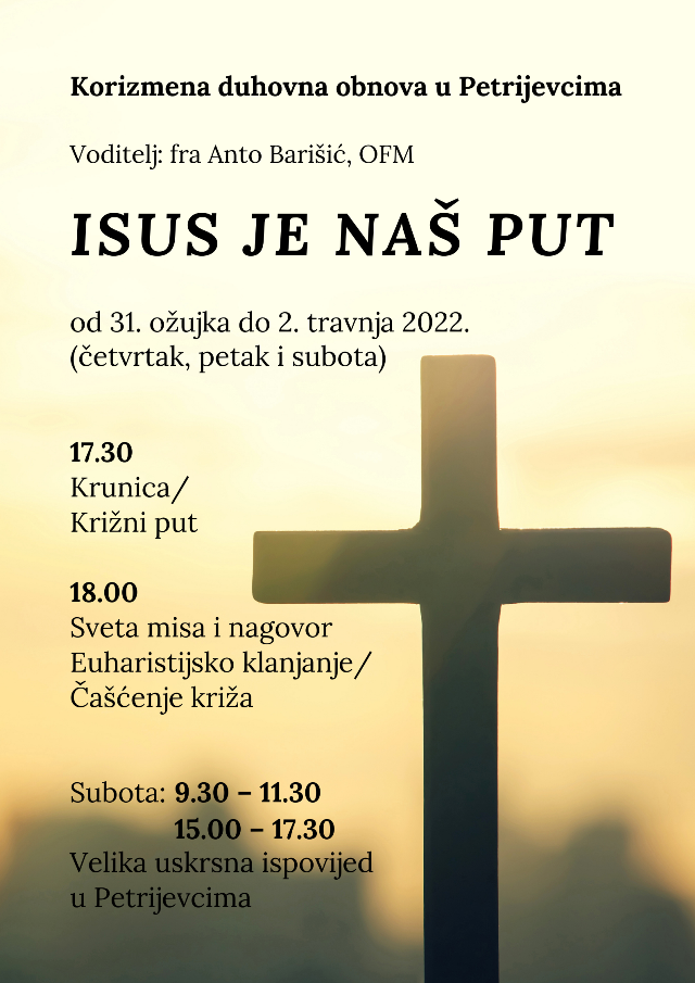 Duhovnu obnovu predvodit će fra Anto Barišić u župnoj crkvi u Petrijevcima od 31. ožujka do 2. travnja 2022.