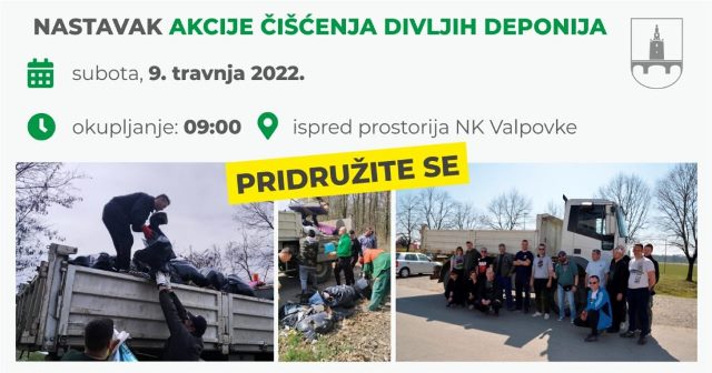 Akcija će se održati u subotu, 9. travnja 2022., a okupljanje je u 09:00 ispred prostorija NK Valpovke.
