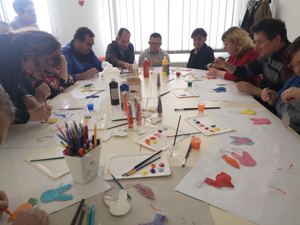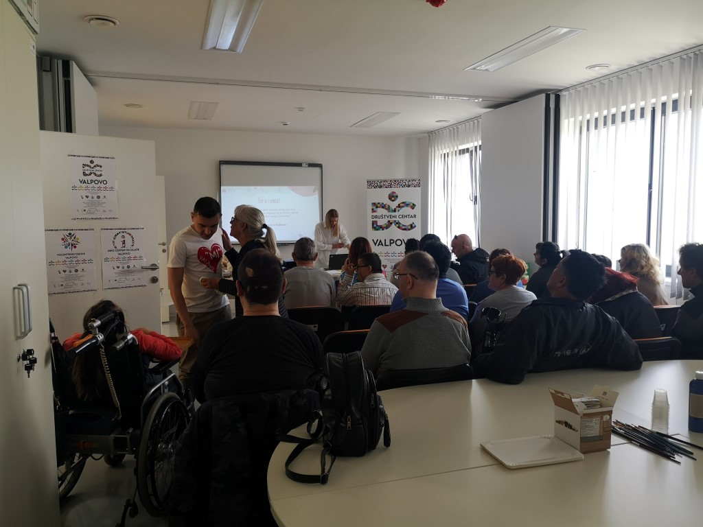 Po završetku obilaska muzeja, zaputili smo se u prostorije Društvenog centra Valpovo gdje su se nastavile planirane aktivnosti. Prva je aktivnost bila predavanje „Ljubav je…“ koju je vodila Sanja Perak. Sudionici su ponovili što za njih znači ljubav te koje dobrobiti ona donosi u život. Nakon predavanja slijedila je kreativna radionica „Uskršnji ukrasi“ na kojoj su sudionici bojili i ukrašavali ukrase od glinamola.