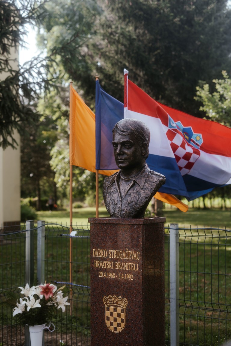 Intoniranjem himne Republike Hrvatske koju je otpjevala Nora Pastulović i minutom tišine odana je počast svim poginulim, umrlim i nestalim hrvatskim braniteljima u Domovinskom ratu a potom, u nazočnosti majke Marije i obitelji Strugačevac svečanost je nastavljena polaganjem vijenca, paljenjem svijeća i recitacijom prigodnih stihova Zdravka Kokorića i Tihomira Dimića.