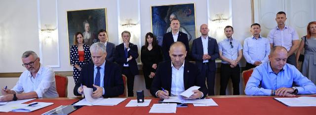 Župan Ivan Anušić i generalni direktor Hrvatskih voda Zoran Đuroković danas potpisali su ugovore kojima Osječko-baranjska županija i Hrvatske vode omogućavaju realizaciju dva značajna projekta.