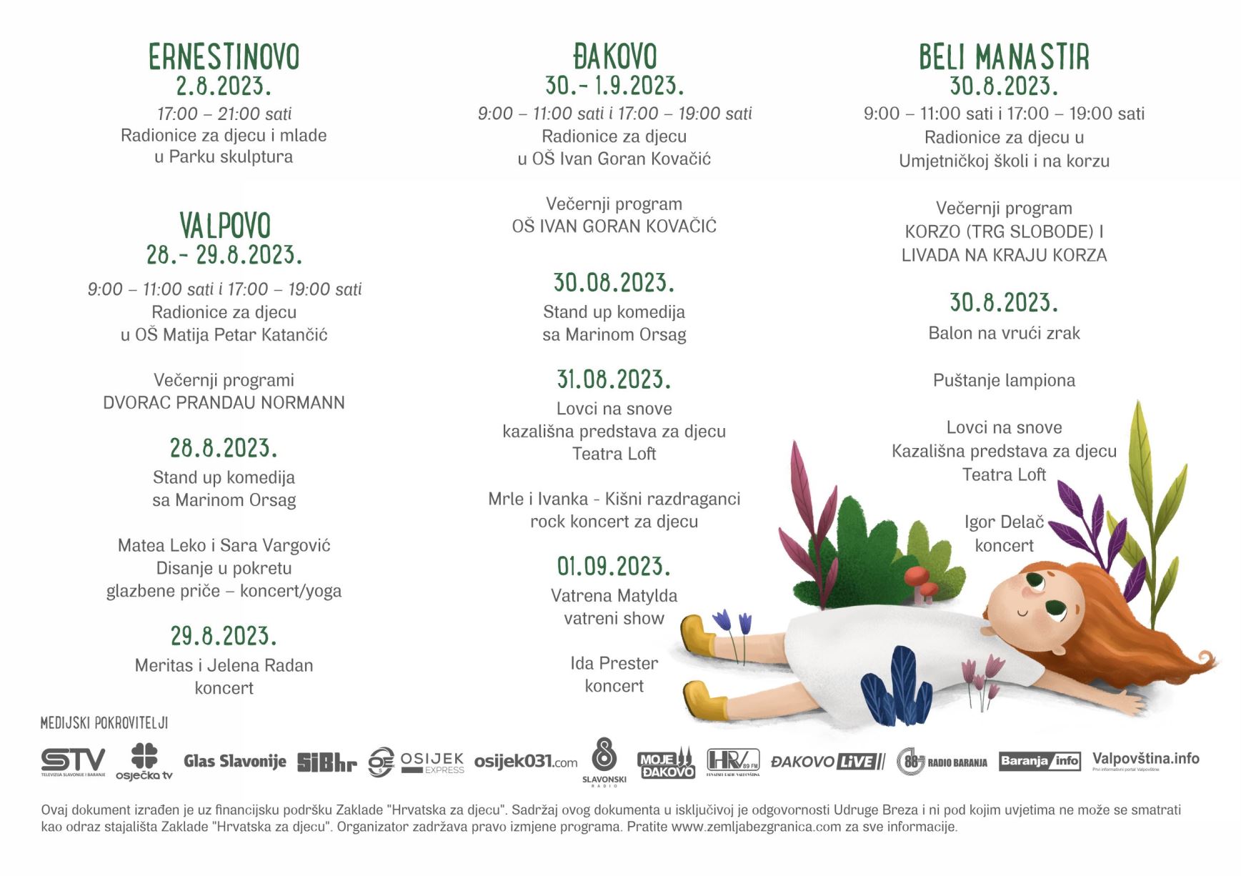 ERNESTINOVO Prvo događanje ovogodišnjega najvećega kontinentalnoga obiteljskoga Festivala Zemlja bez granica, počinje u srijedu, 2. kolovoza s početkom od 17 sati u Parku skulptura u Ernestinovu.