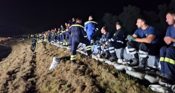 Jučer od 13 sati do noćas u dva sata poslije ponoć bespoštednim su angažmanom izgradili gotovo kilometar dug nasip od vreća s pijeskom i obuzdali vodenu stihiju.