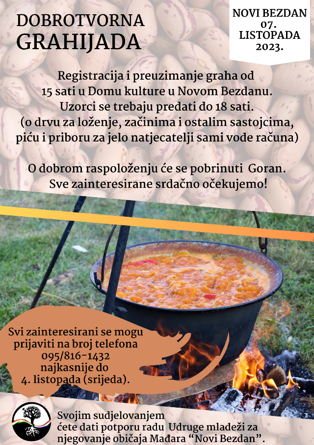 U subotu, 7. listopada, u Domu kulture u Novom Bezdanu organiziraju Dobrotvornu grahijadu, natjecanje u kuhanju graha s ciljem prikupljanja novčanih priloga za nastavak djelovanja Udruge.