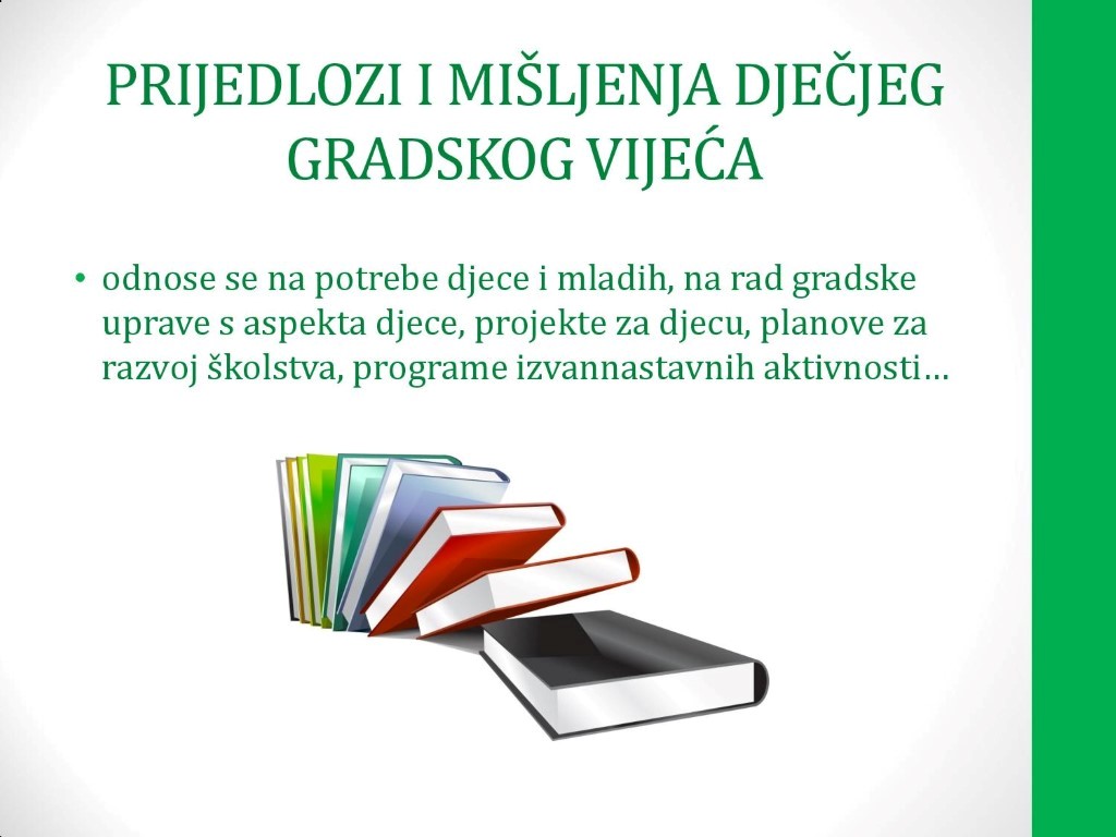 Mali su gradski vijećnici uz pomoć voditeljice Marte Đurković nakon upoznavanja, gradonačelniku predstavili svoja razmišljanja i ideje o unapređenju svakodnevice najmlađih sugrađana, a potom je gradonačelnik strpljivo odgovarao na njihova pitanja, koja su mu predali su kutijici u obliku srca, i tako simbolično pokazali kako od srca, konstruktivno razmišljaju i s interesom prate rad gradonačelnika.