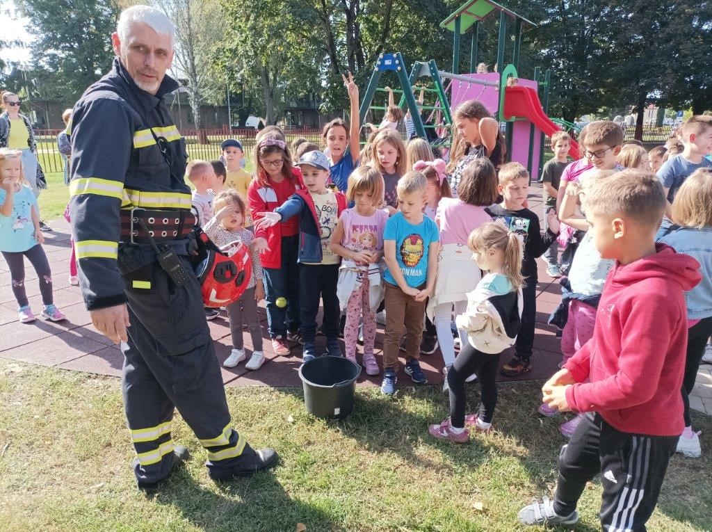 Na dvorišnom prostoru Vrtića i Osnovne škole prikazana im je edukativna prezentacija s naznakom što je vatrogasna djelatnost, s čime se vatrogasci bave, a posebno na što djeca moraju obratiti pozornost da do požara ne dođe. Ujedno im je pokazana vatrogasna tehnika i oprema koju vatrogasci koriste na intervencijama.