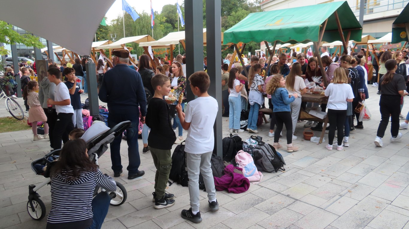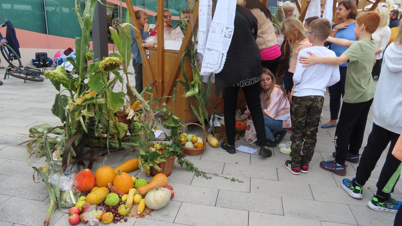 U skladu s tradicijom, u čast Dana kruha i zahvalnosti za plodove zemlje, u suradnji učitelja, učenika, roditelja, baka i djedova i drugih koji se žele uključiti, na Trgu kralja Tomislava bili su postavljeni štandovi koje su ukrasili proizvodima po vlastitom izboru – kruhom, pecivima, kolačima, voćem, povrćem…