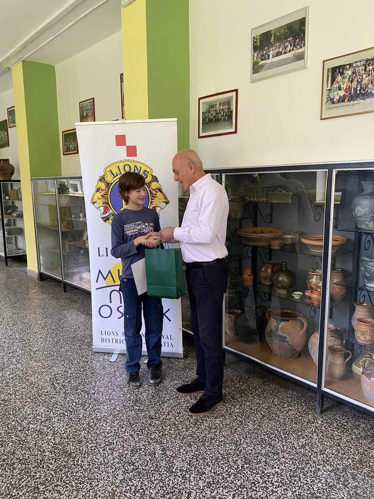 -Držimo palčeve za Marina Jurlinu, učenika čije je rad proglašen najboljim u Distriktu 126 i ulazi u konkurenciju za međunarodnog pobjednika! Osim prve nagrade Distrikta 126 učenik je iz ruku predsjednika Lions cluba Valpovo Belišće Zvonka Barišića dobio i dodatni poklon LC Valpovo Belišće koji je sponzorirao natječaj u Osnovnoj školi Matije Petra Katančića u Valpovu i motivirao učenike i nastavnike da se i ove godine uključe. Malu prigodnu svečanost za pobjednika natječaja i njegove roditelje, u školi organizirala je ravnateljica Sanja Birović.