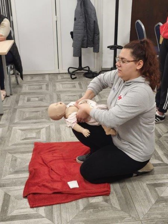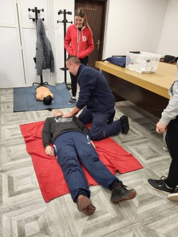 BELIŠĆE U sklopu redovne mjesečne vježbe operativnih članova Dobrovoljnog vatrogasnog društva Belišće, jučer su volonteri Gradskog društva Crvenog križa Valpovo održali prezentaciju pružanja prve pomoći.