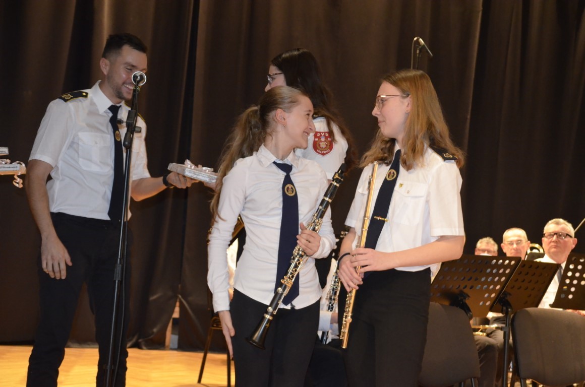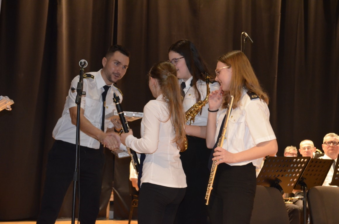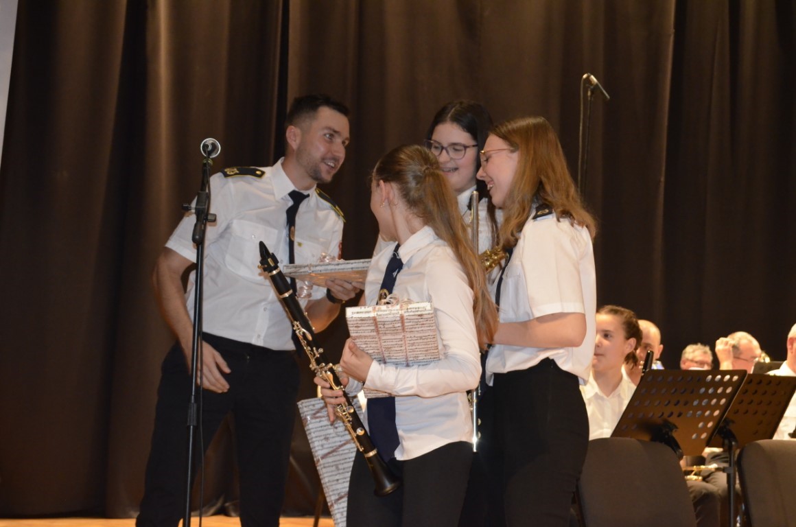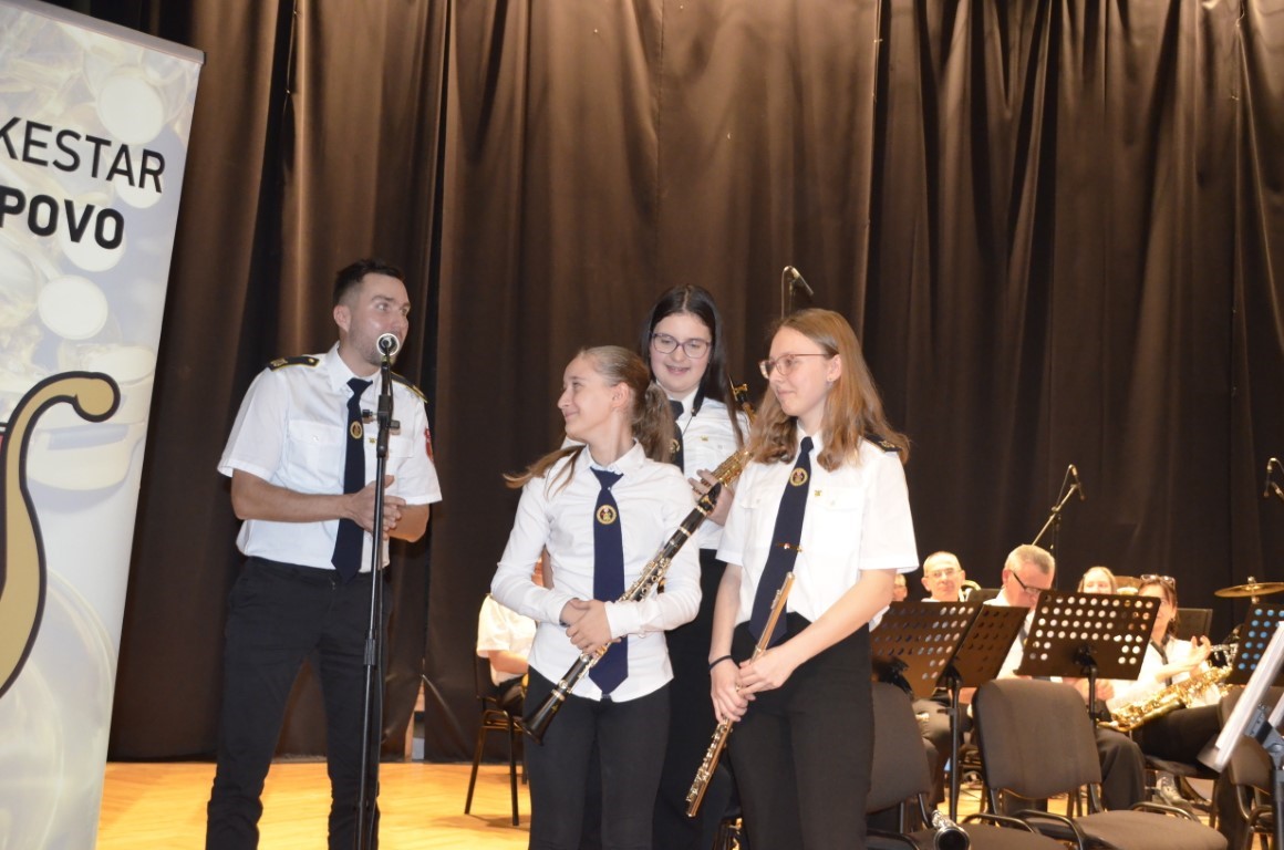 U nastavku tajnik Puhačkog orkestra Filip Glavaš uručio je prigodne poklone i čestitke Lani Bulut, Neri Torjanac i Katarini Rosić povodom njihovog prvog nastupa na ovako velikom koncertu. Bila je to prigoda da se čestita dvojici najdugovječnijih članova orkestra Dragi Cveniću i Tomi Štruklecu Cobri, a pljeskom je nagrađen i član orkestra Željko Gebaj, ovogodišnji laureat Plakete Matija Petra Katančić.
