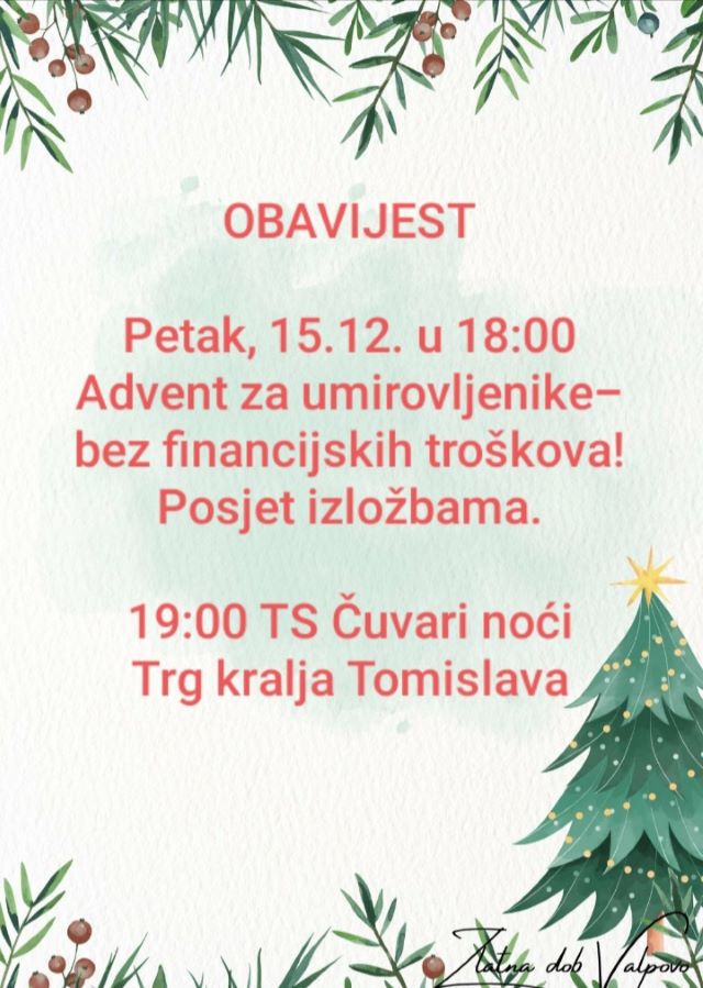 ADVENT U VALPOVU ZA UMIROVLJENIKE: Šetnja izložbama, okrjepa i koncert