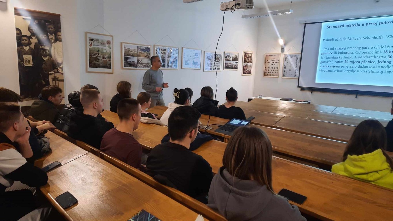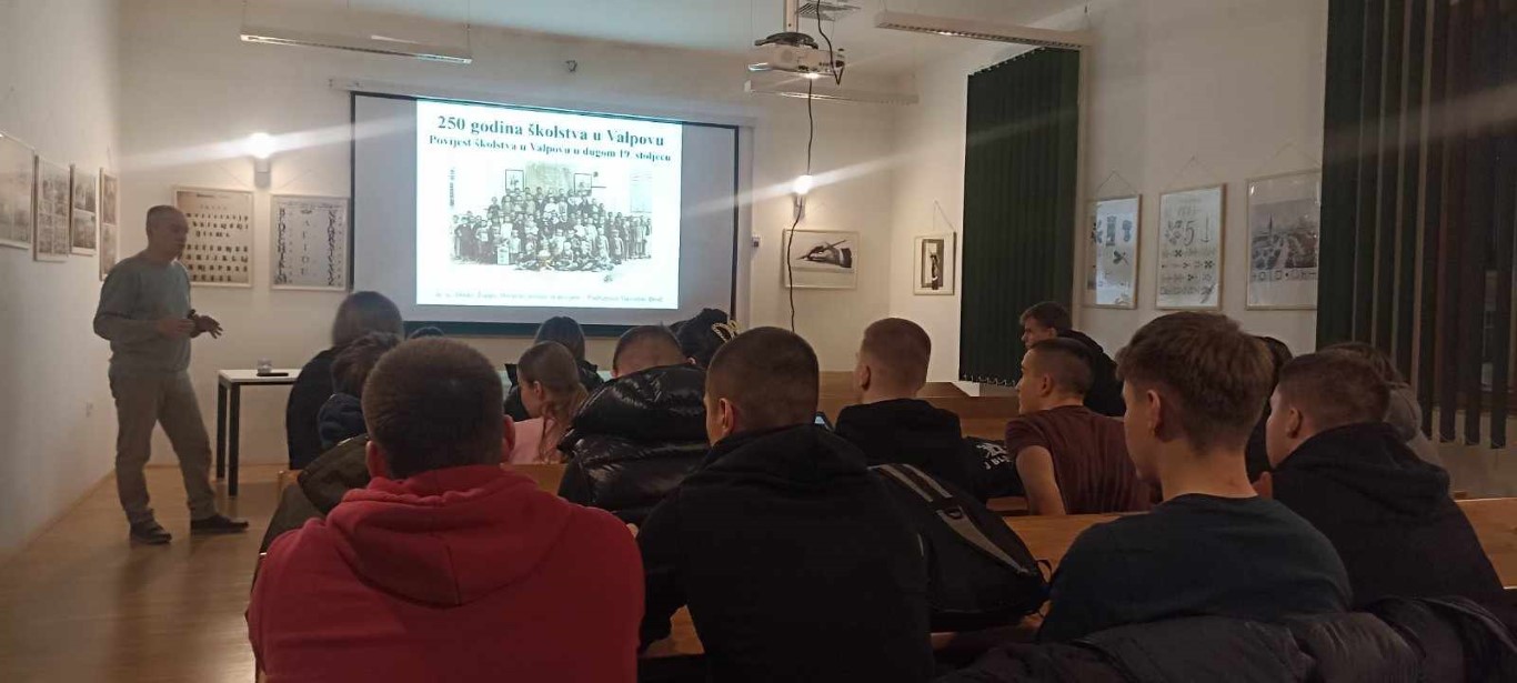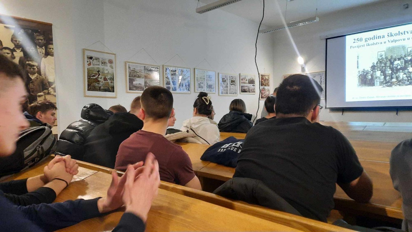 U Edukacijsko – interpretacijskom centru, gdje je nekada bila školska zgrada, doktor povijesne znanosti, Dinko Župan, održao je trećim razredima Srednje škole Valpovo zanimljivo predavanje o Povijesti školstva u Valpovu.