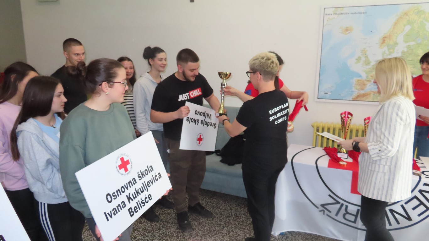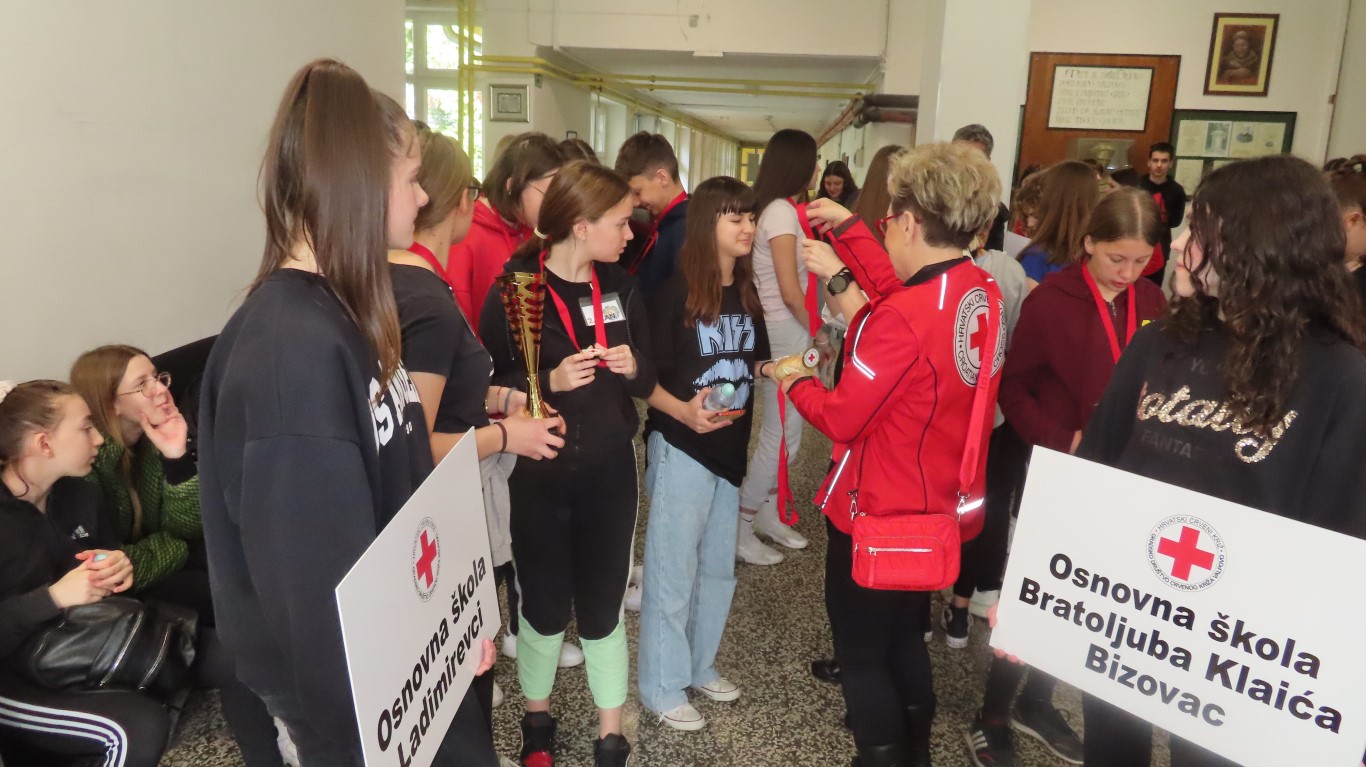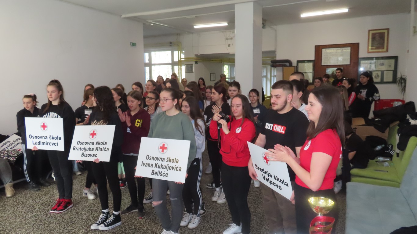 Nakon dvosatnog natjecanja u kome su u posebnim ulogama stradalnika sudjelovali i glumci volonteri, također članovi mladih Crvenog križa, saznalo se da su članovi tima Osnovne škole Ladimirevci pokazali najviše znanja i vještine u konkurenciji učenika Osnovnih škola, a njima će se na višoj razini natjecanja pridružiti i učenici Srednje škole Valpovo u svojoj konkurenciji.