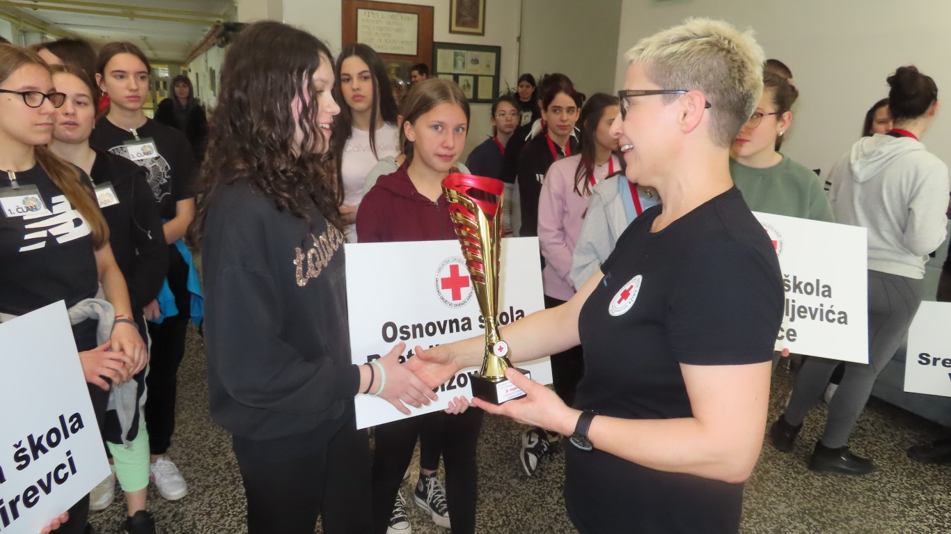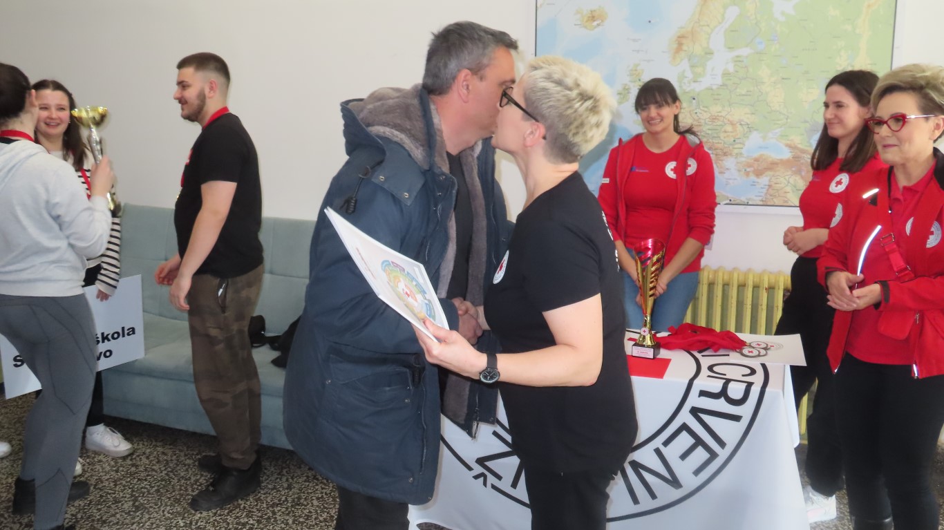 Natjecatelje je pozdravila i uspjeh u natjecanju poželjela ravnateljica Gradskog društva Crvenog križa Valpovo Sanja Habuda i zahvalila na njihovom angažmanu u svladavanju vještine pružanja prve medicinske pomoći koja će im svakako koristiti u godinama koje su pred njima, bilo da ć se odlučiti za neko medicinsko zvanje ili će, kao roditelji ili „obični“ građani, biti u povlaštenom položaju osposobljeni za pružanje prve medicinske pomoći u nekim izvanrednim situacijama.