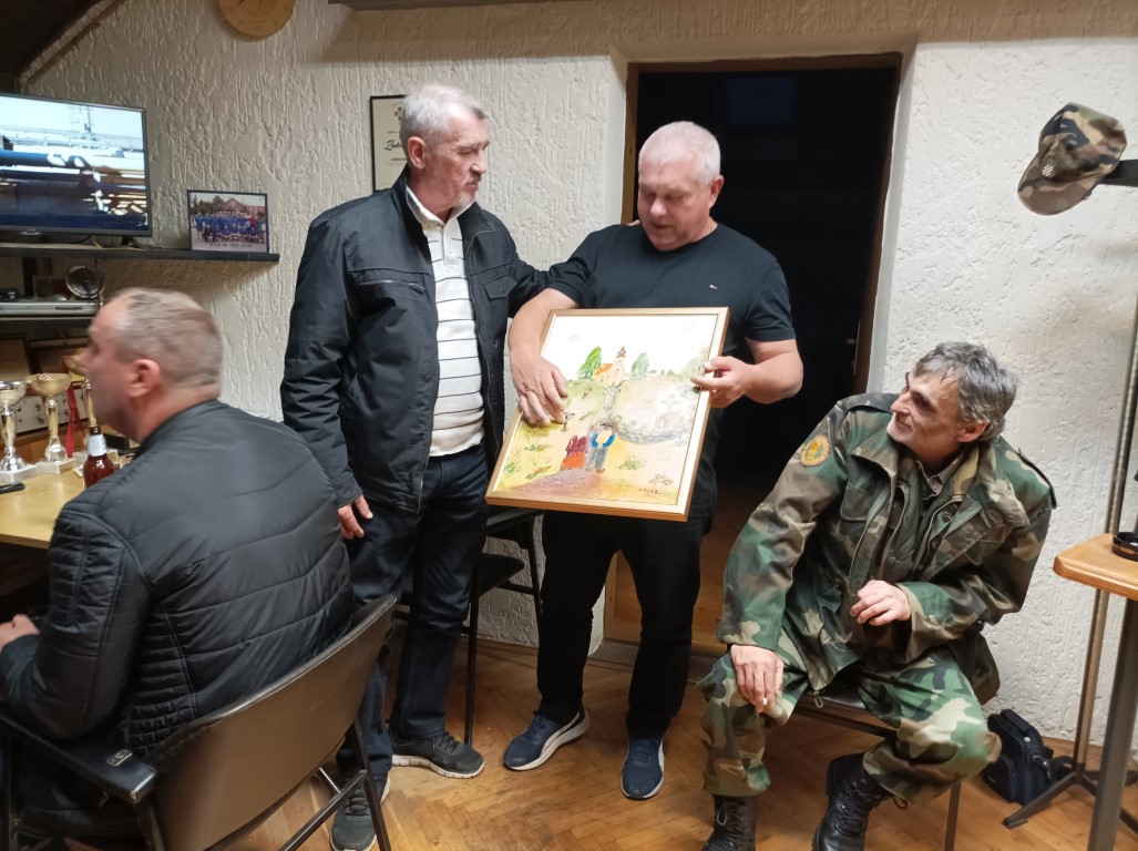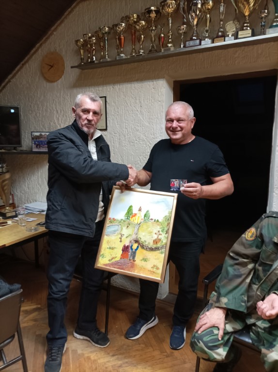 -S posebnom smo zahvalnošću bili domaćini izaslanstvu dragovoljaca Preloga koje je predvodio Božidar Benković i pružio podršku u obilježavanju obljetnice akcije Baranja. Kao uspomena na druženje i podršku ostat će dar - umjetnička slika Helene Fijok Benković.