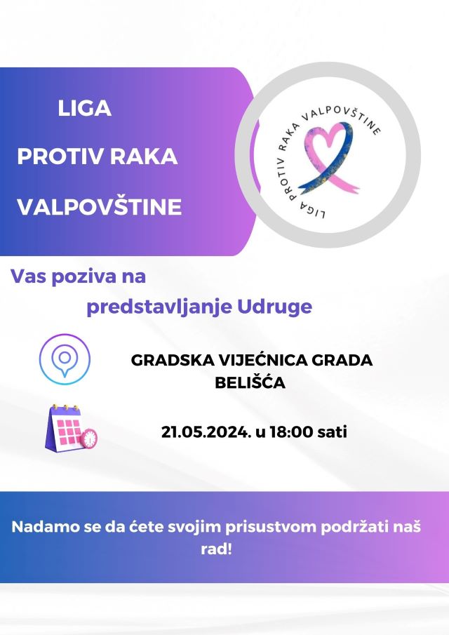 -Zadnje, ali ne manje važno, predstavljanje održat ćemo 21. svibnja u 18:00 sati u Belišću u Gradskoj vijećnici, poručuje Sanja i poziva zainteresirane.