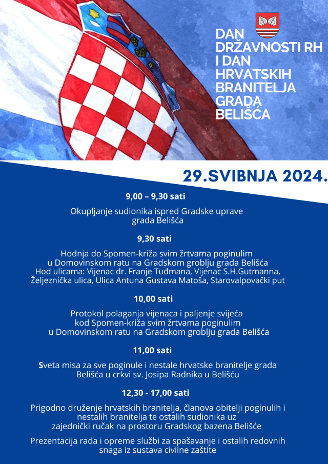 BELIŠĆE Prigodnim programom Grad Belišće će obilježiti Dan državnosti Republike Hrvatske i Dan hrvatskih branitelja grada Belišća.