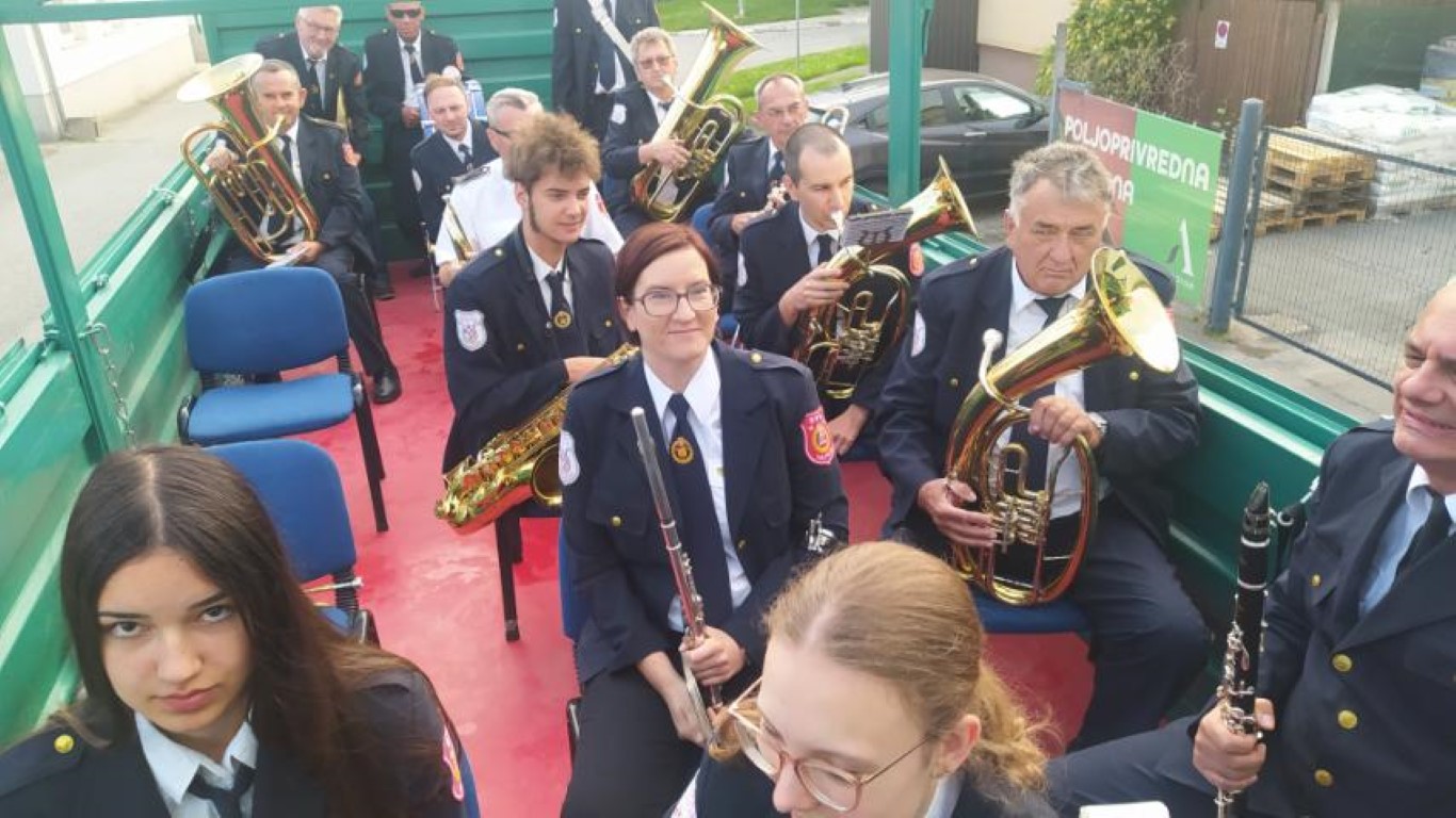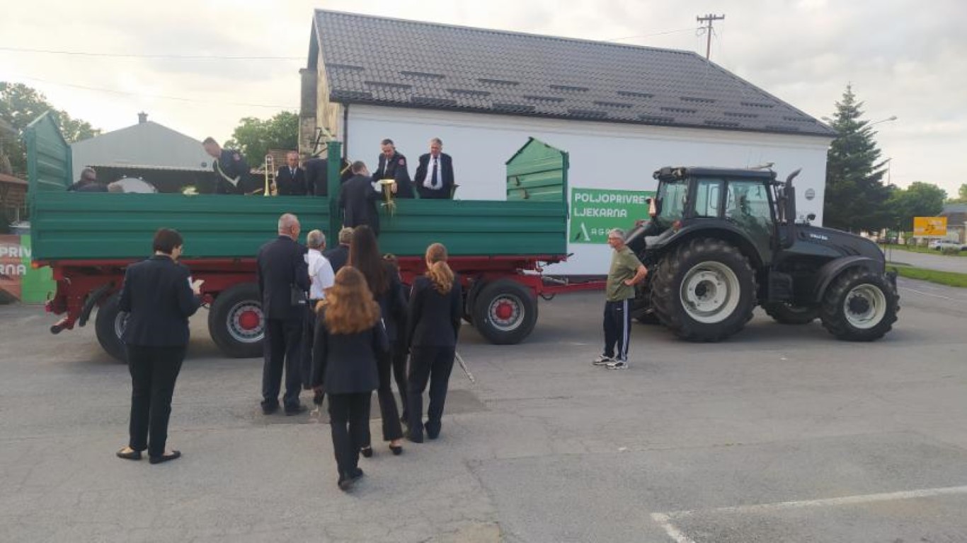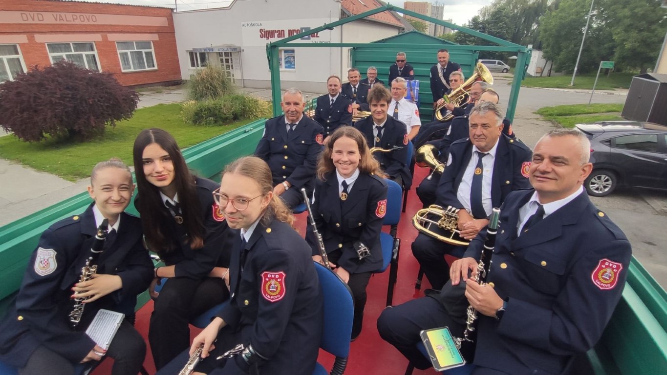 Tako je bilo i jučer, ali, ovoga puta je to bilo na jedan novi i originalan način! Zahvaljujući jednom svom članu dopremljena je velika traktorska prikolica u koju su stali svi glazbenici. Polaganom traktorskom vožnjom uz sviranje koračnica obišli su cijelo Valpovo.