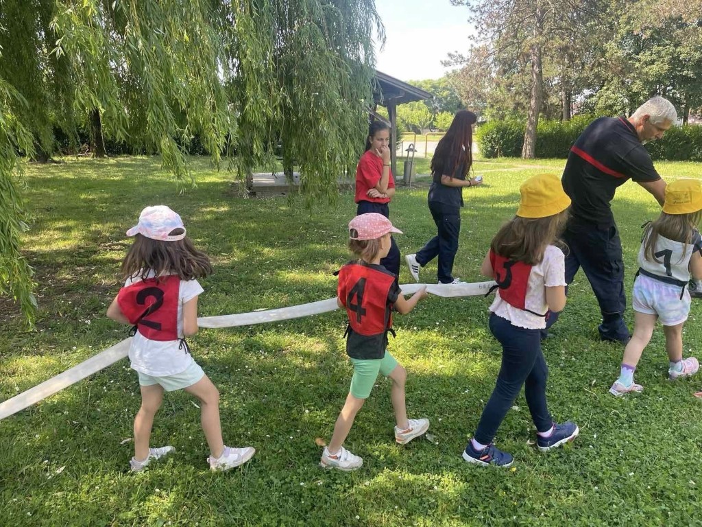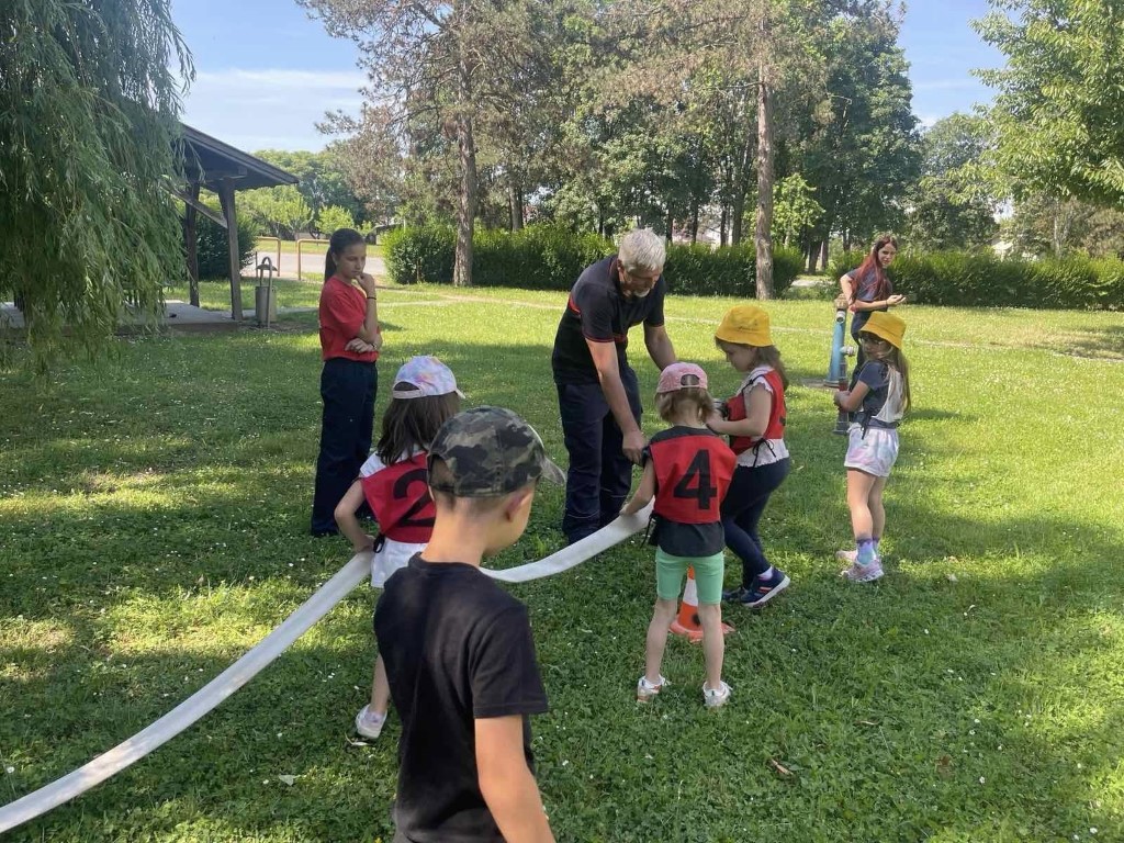 Djeca su se zatim okušala u natjecateljskoj igri korištenja tzv. brentače i gađanja u metu vodenim mlazom. Također, savladavali su vatrogasni poligon na kojem su provjerila svoju motoričku vještinu i sposobnost.