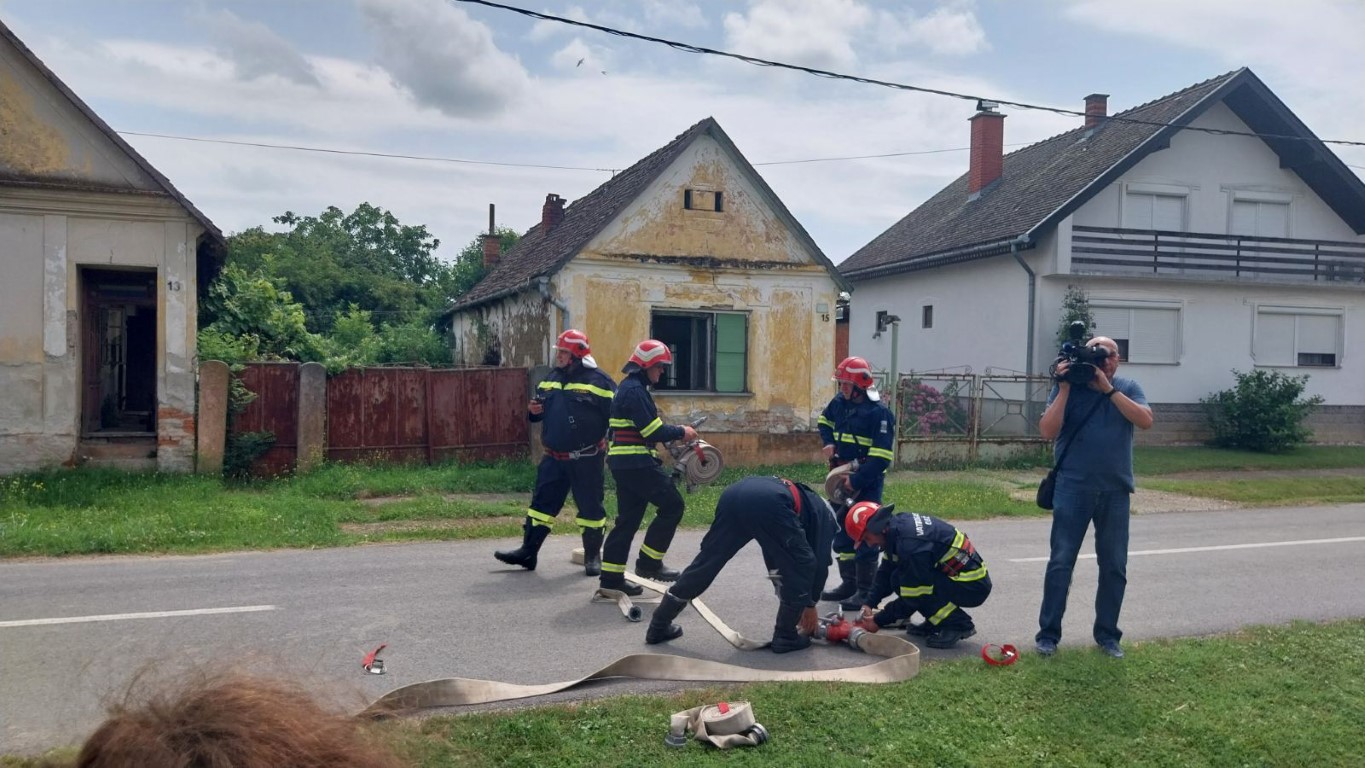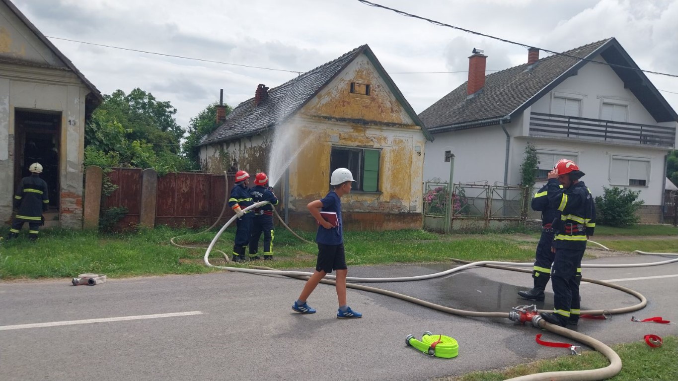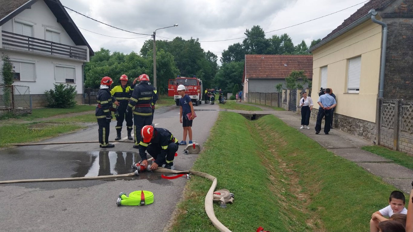 MARJANČACI Jučer je u Marjančacima, u vremenu od 11,00 do 12,00 sati u ulici Ljudevita Gaja, održana združena taktičko-pokazna vatrogasna vježba gašenja požara stambenih objekata, odnosno, obiteljskih kuća koje su samostojeće u nizu.